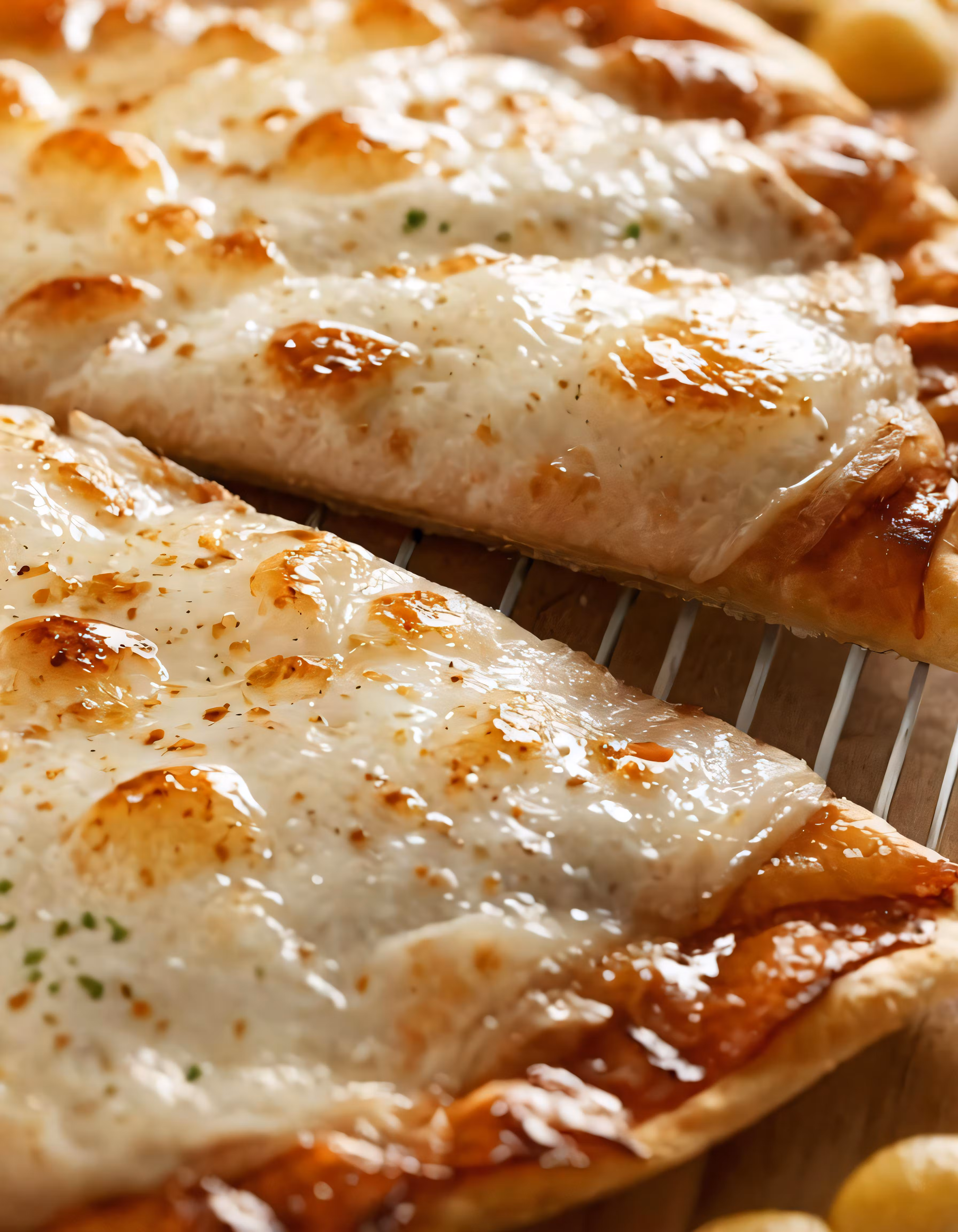 High resolution picture, free to use, two cheese pizzas sit on top of a tray next to snacks