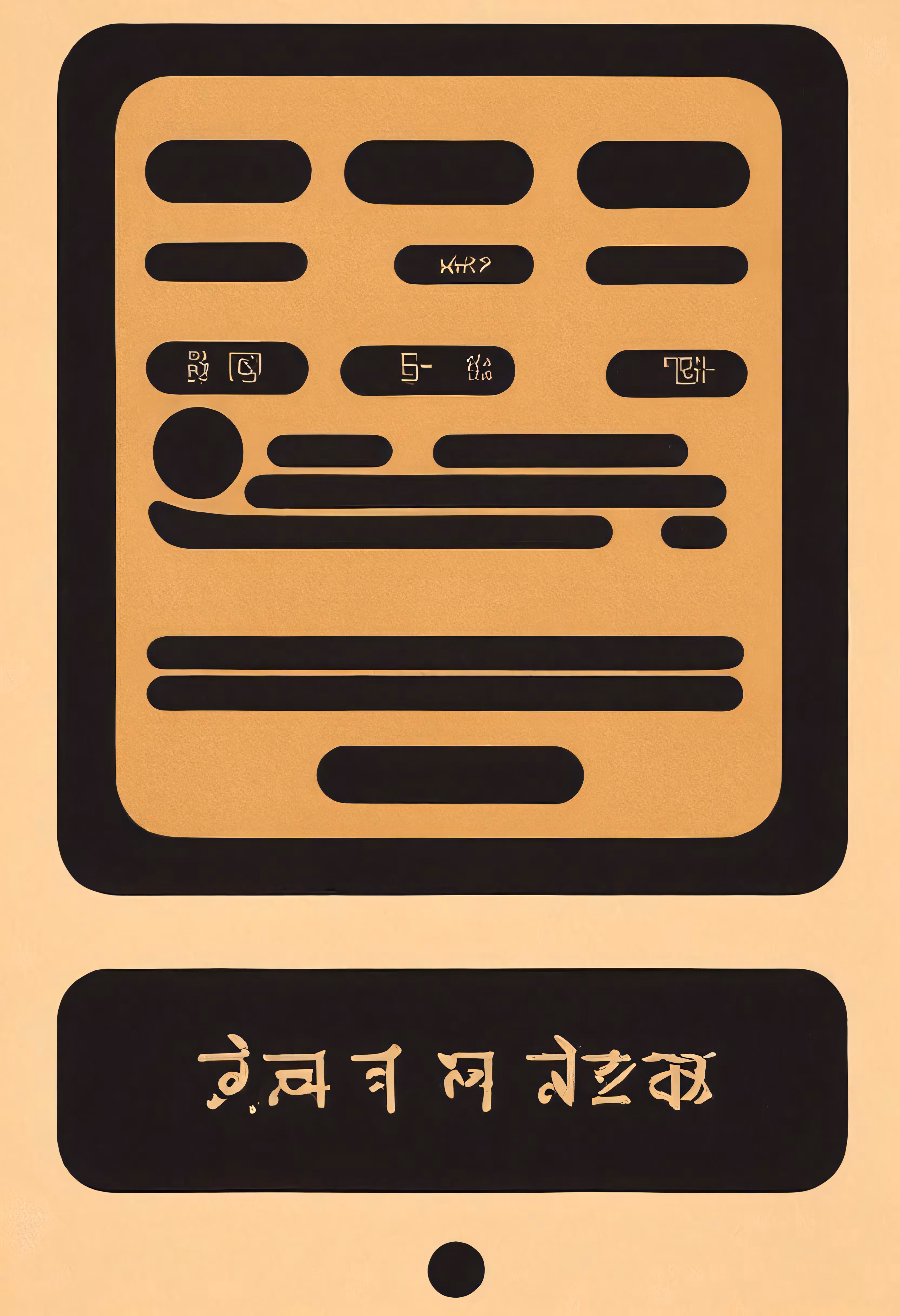 High resolution picture, free to use, two chinese letters written in different languages and a graphic illustration of the same type on the same