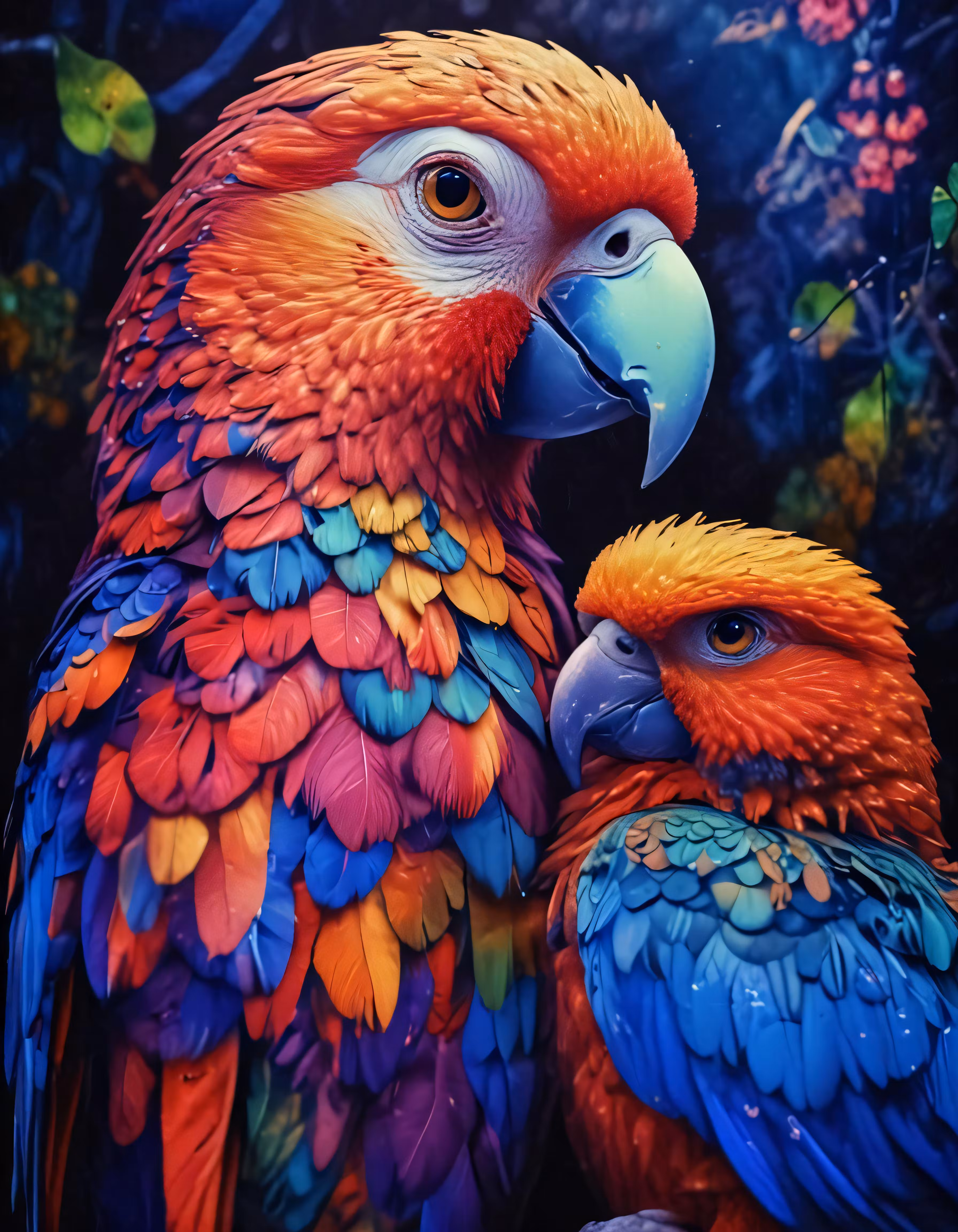 High resolution picture, free to use, two colorful birds on a colorful night background