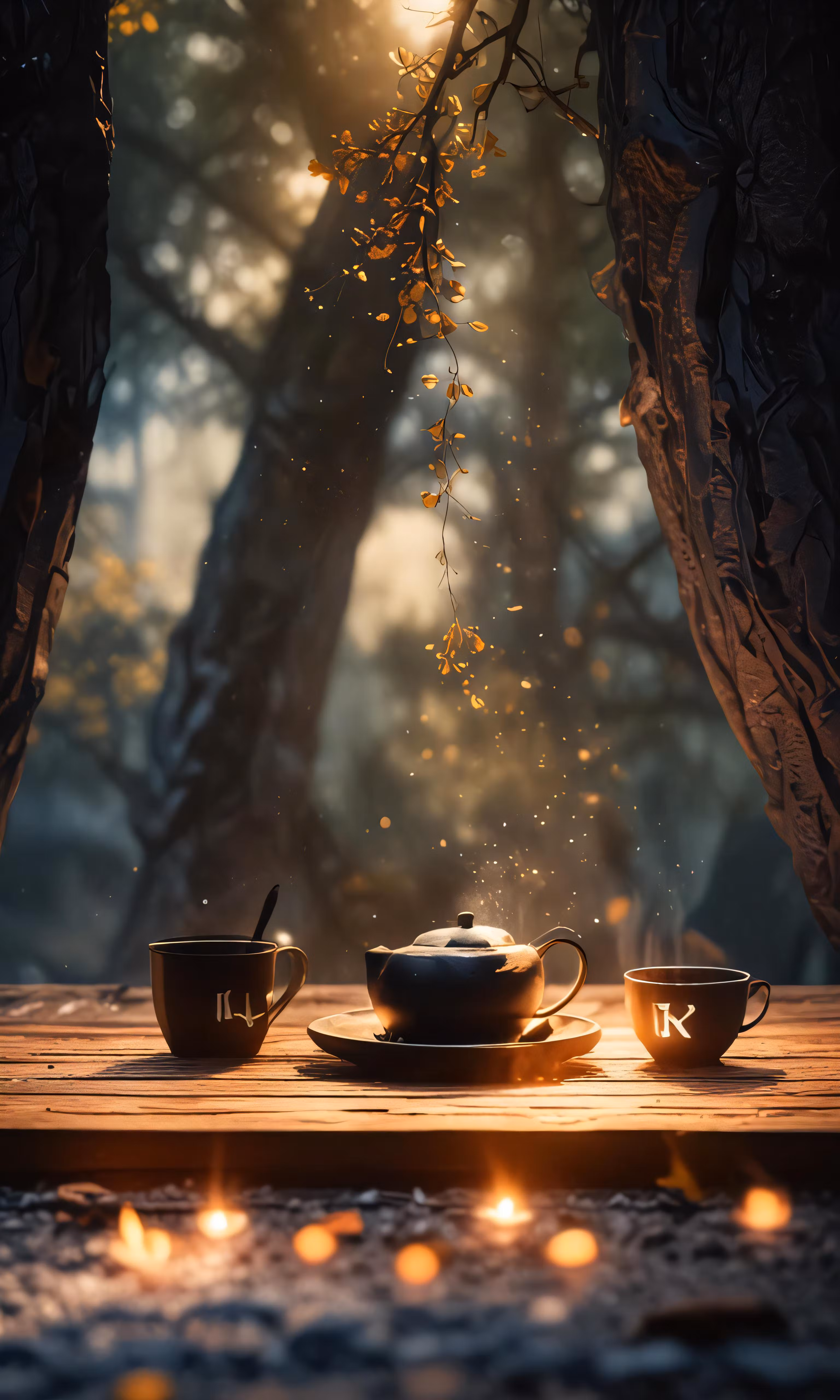High resolution picture, free to use, two cups sit next to a tea pot and saucer