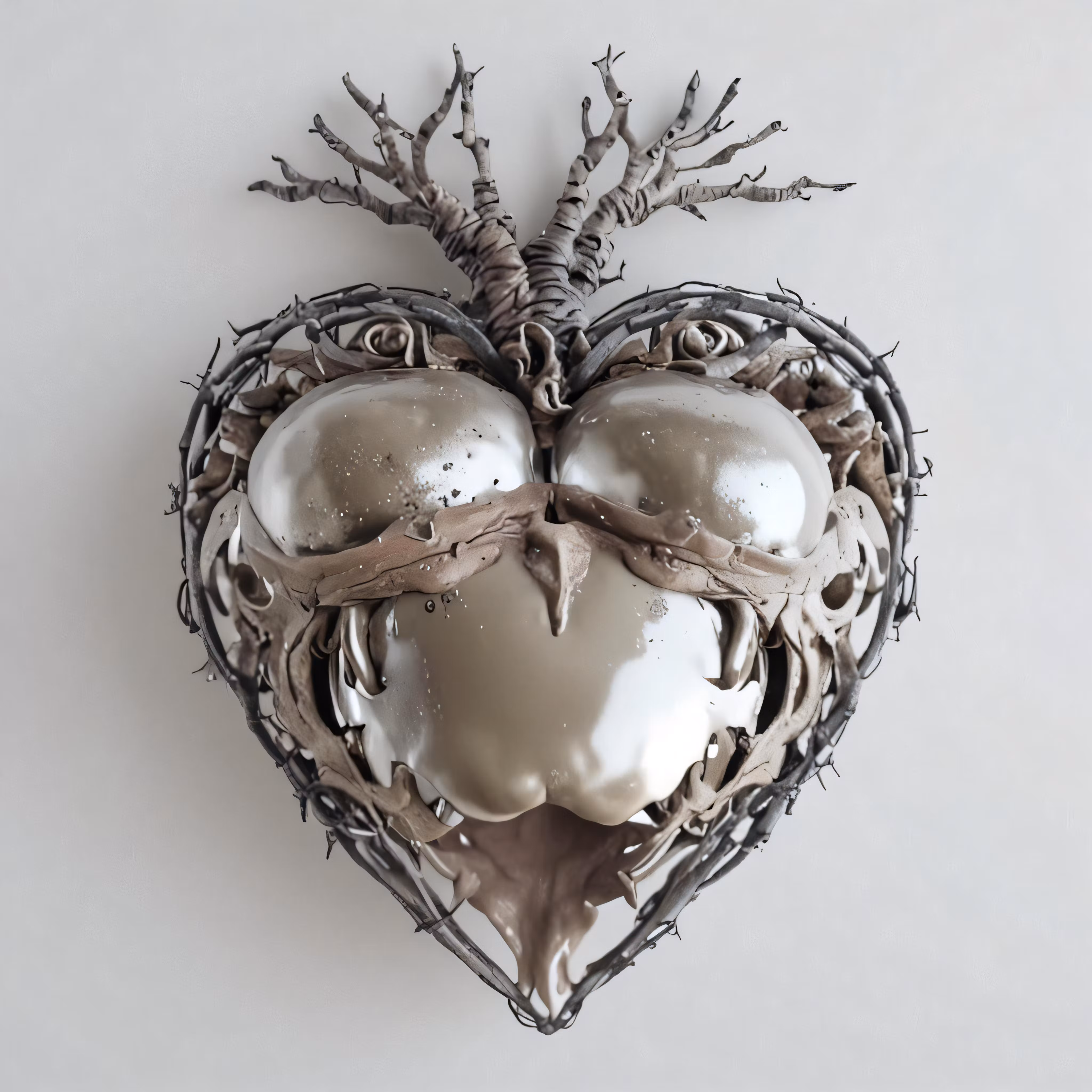 High resolution picture, free to use, two decorative heart shaped mirrors sitting on top of a wall