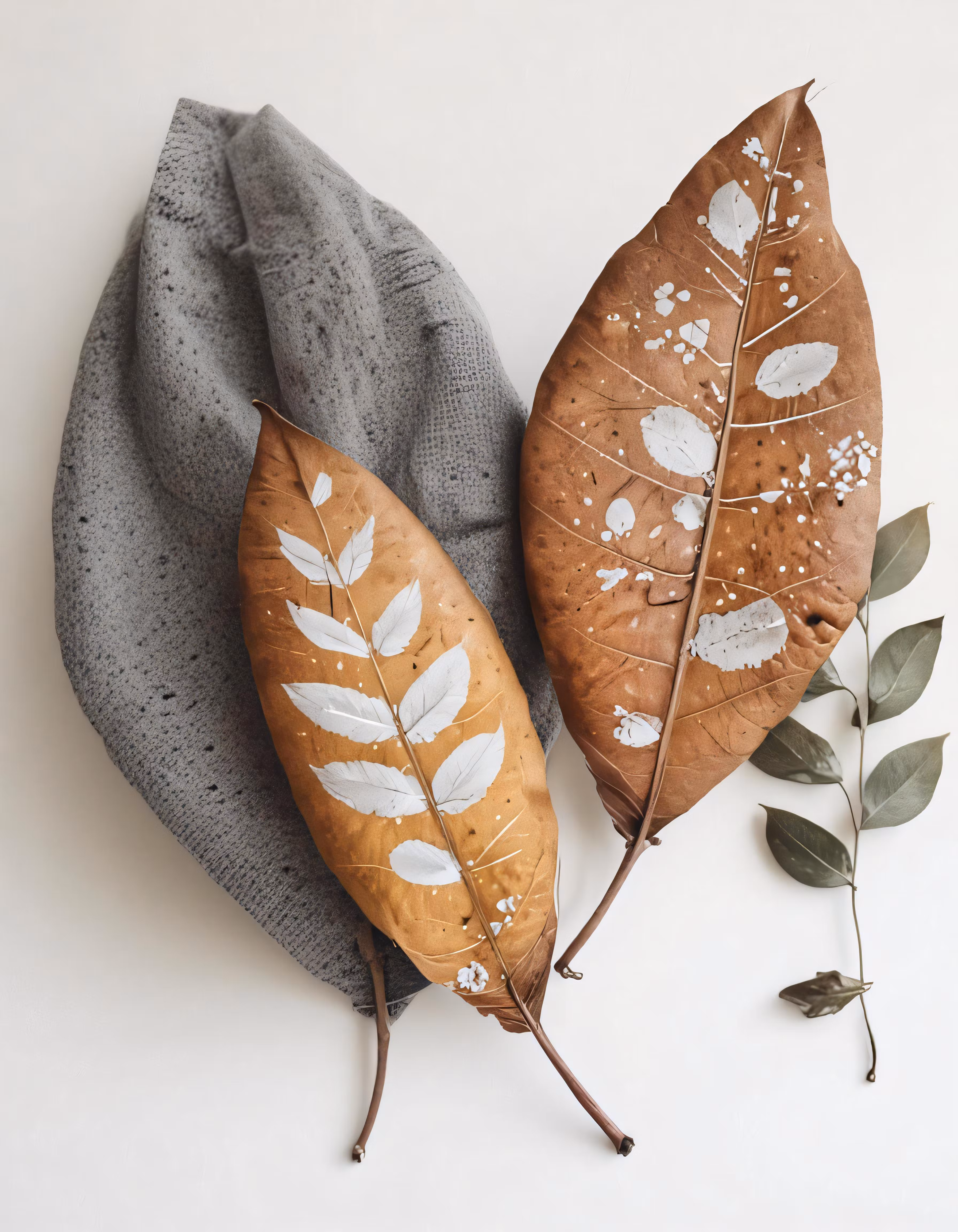 High resolution picture, free to use, two different leaf types laying on top of each other