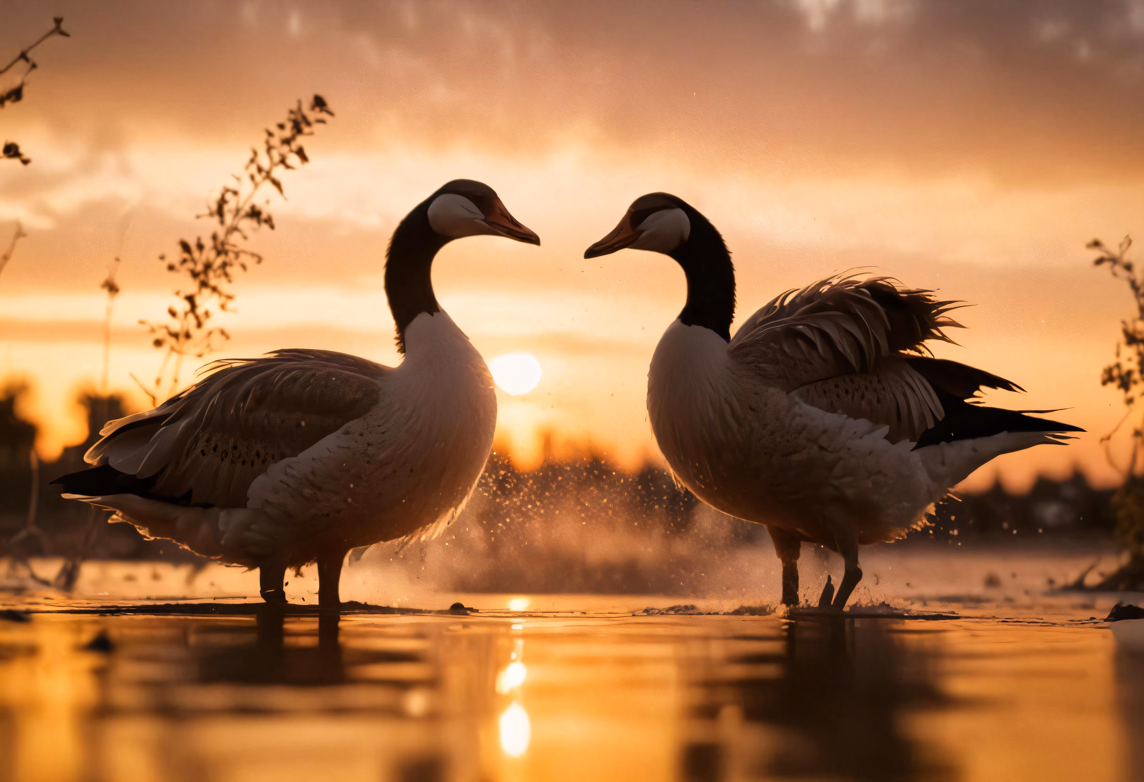 High resolution picture, free to use, two ducks standing in the water looking at each other