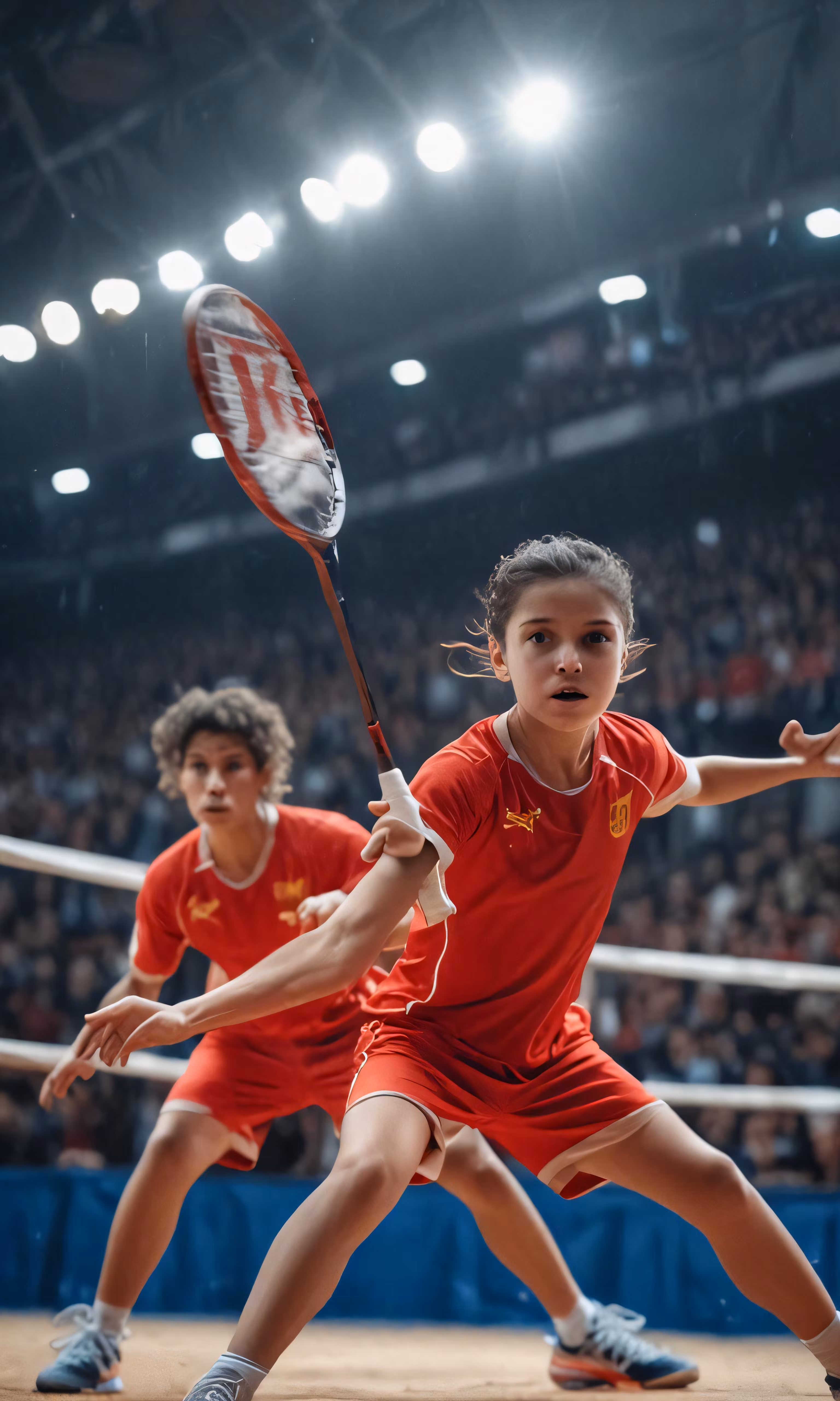 High resolution picture, free to use, two female tennis players in the middle of the court