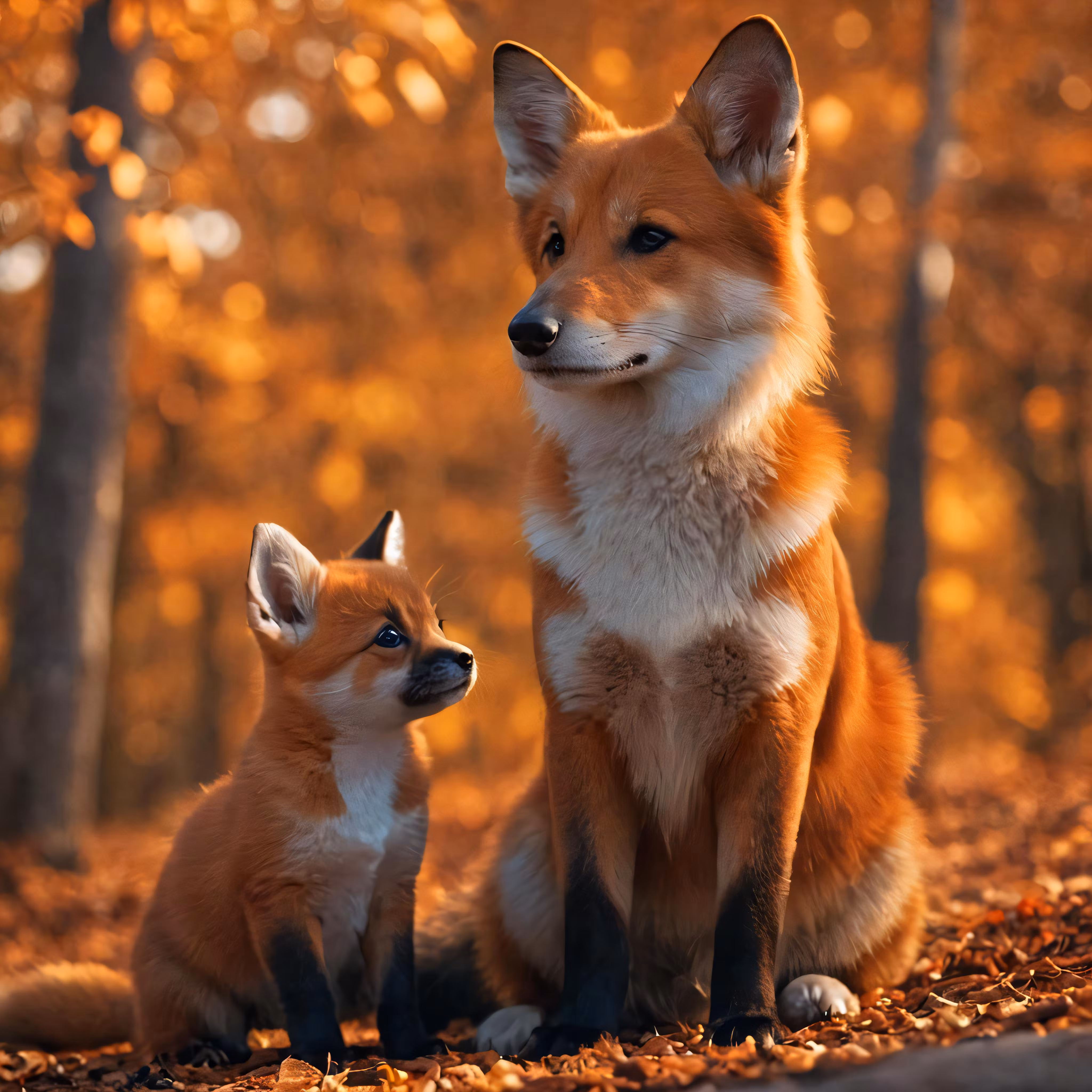 High resolution picture, free to use, two foxes sit next to each other in the woods