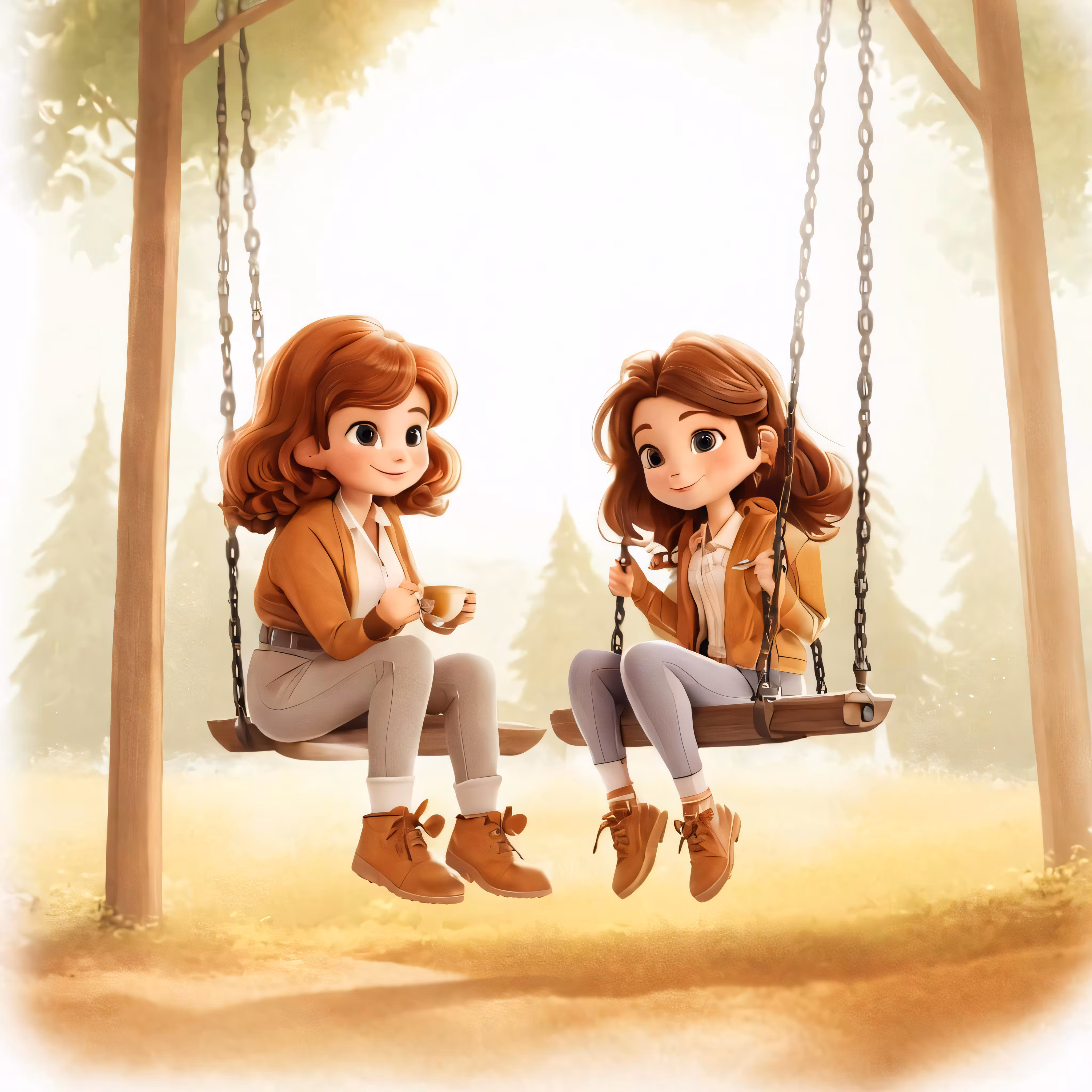 High resolution picture, free to use, two girls sitting on swings one of which is swinging