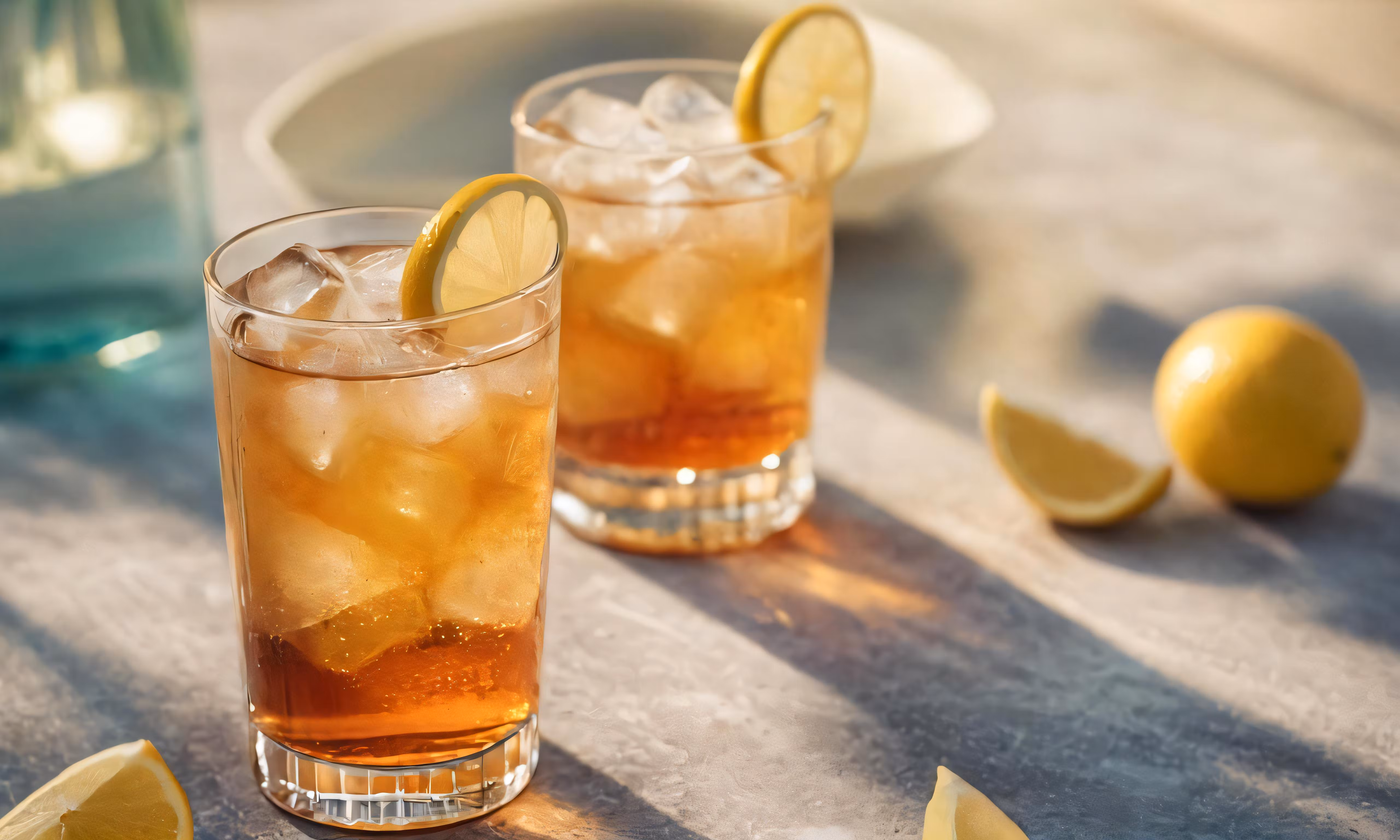 High resolution picture, free to use, two glasses with iced tea and sliced lemons