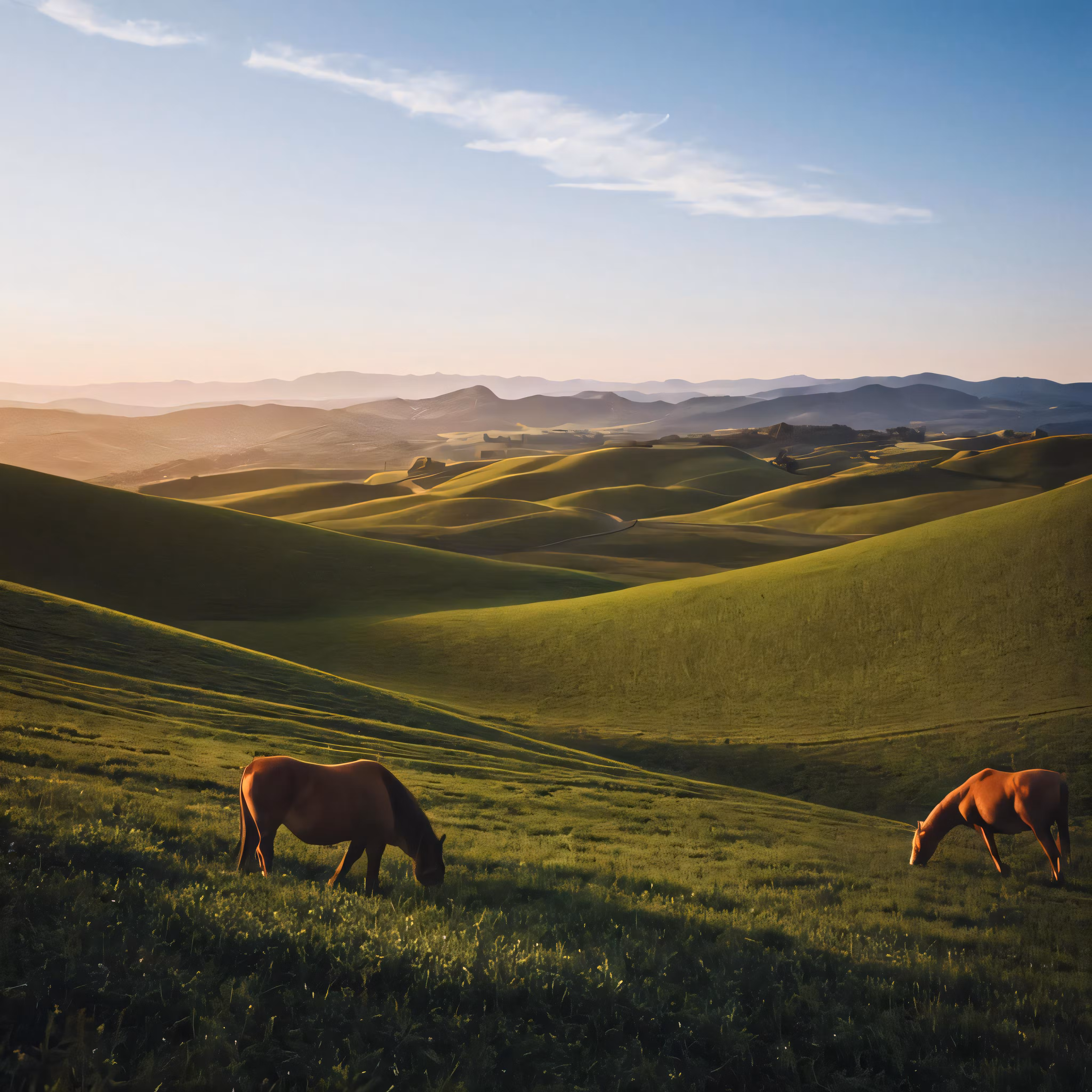 High resolution picture, free to use, two horses are grazing in a field
