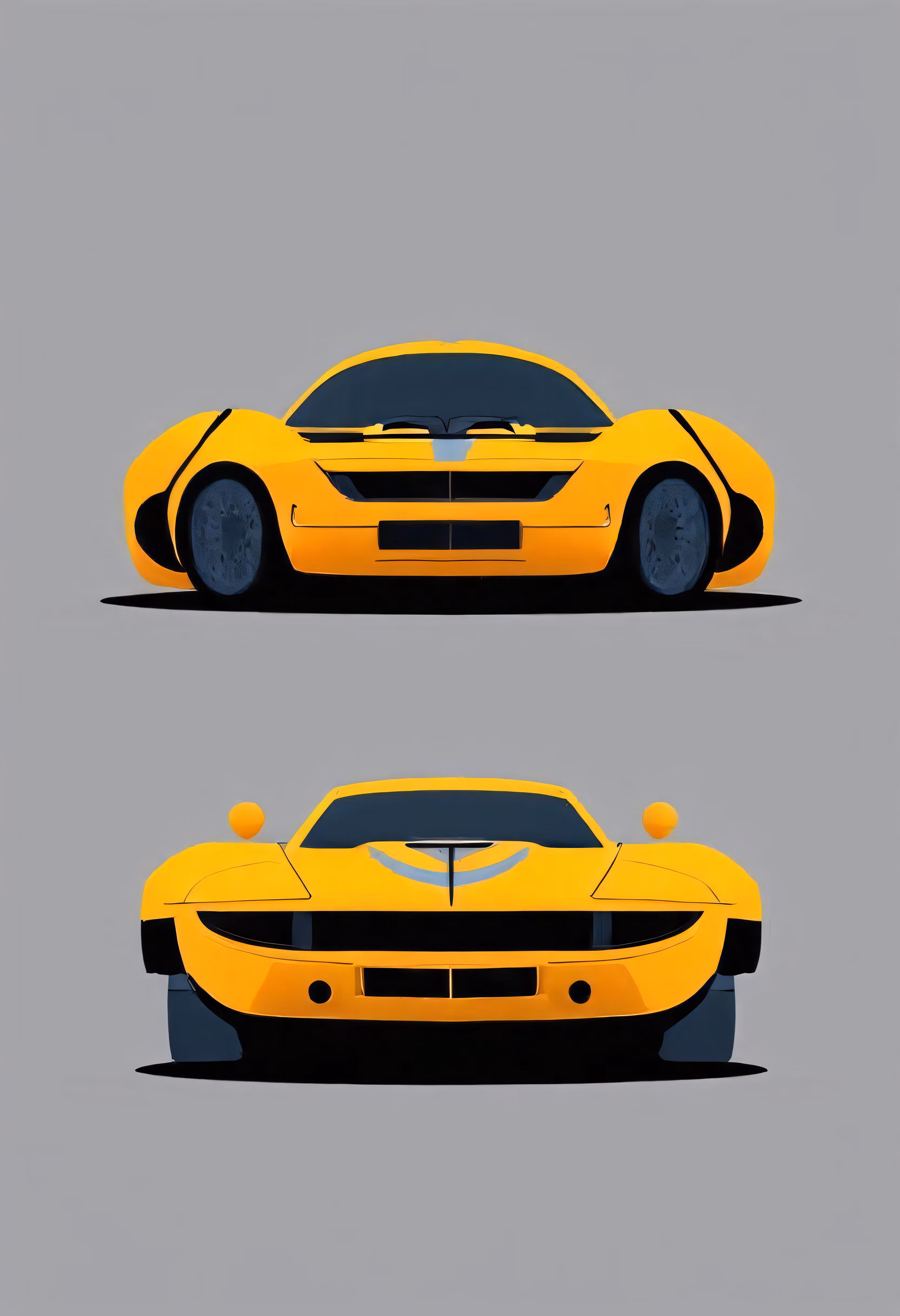 High resolution picture, free to use, two illustrations of a yellow sports car