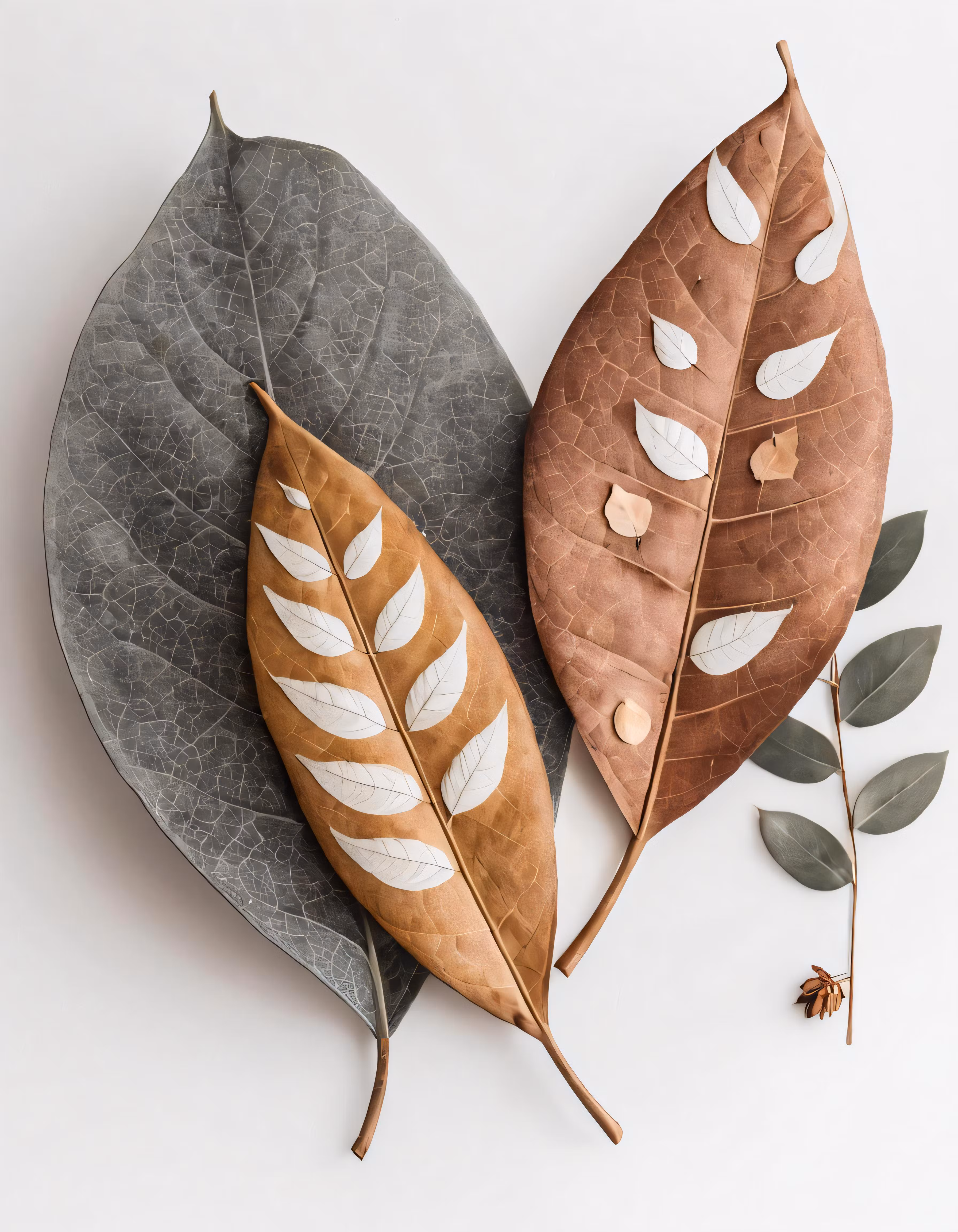 High resolution picture, free to use, two leaves are sitting on a grey plate