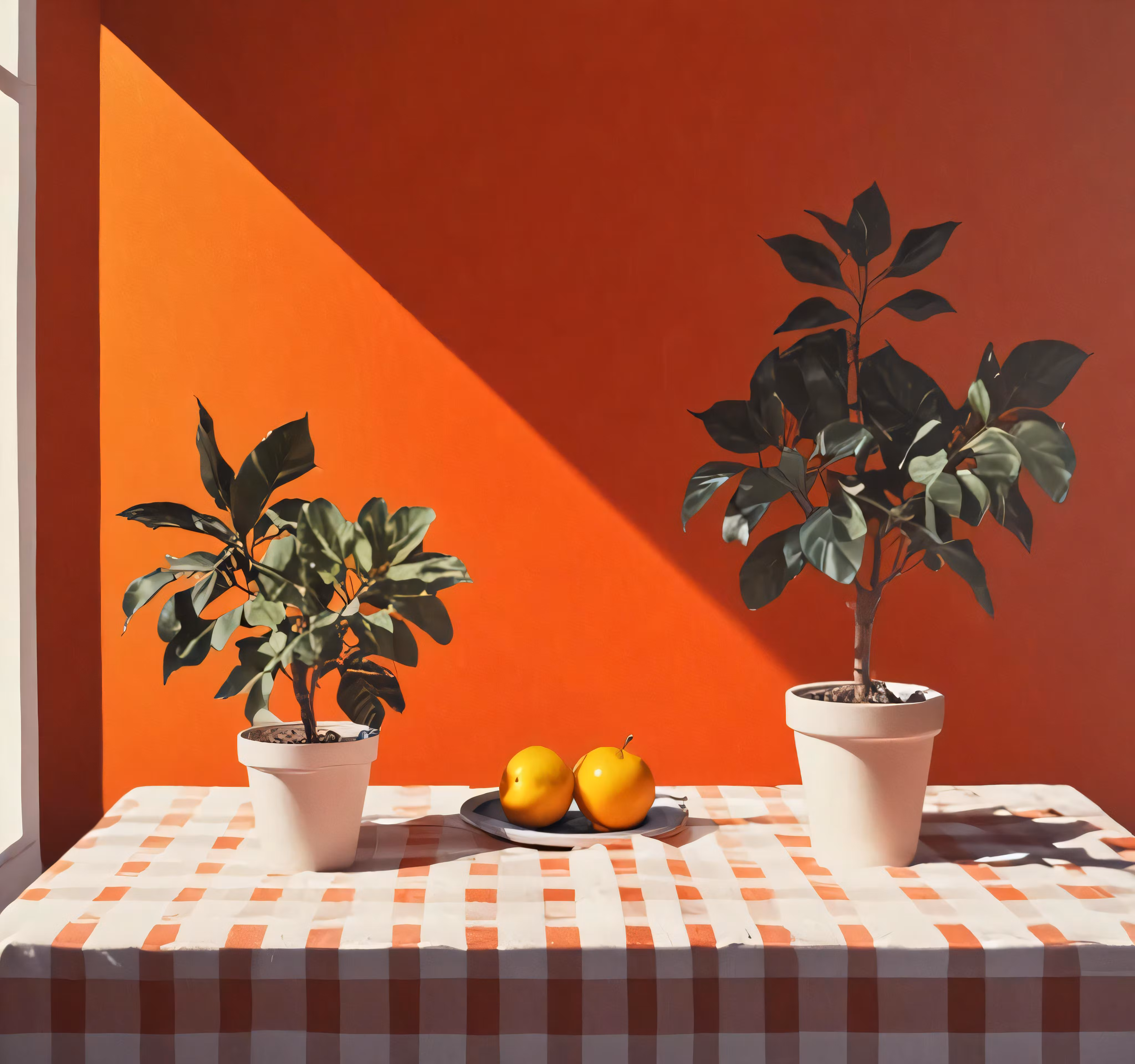 High resolution picture, free to use, two lemons are placed next to two plants on a table
