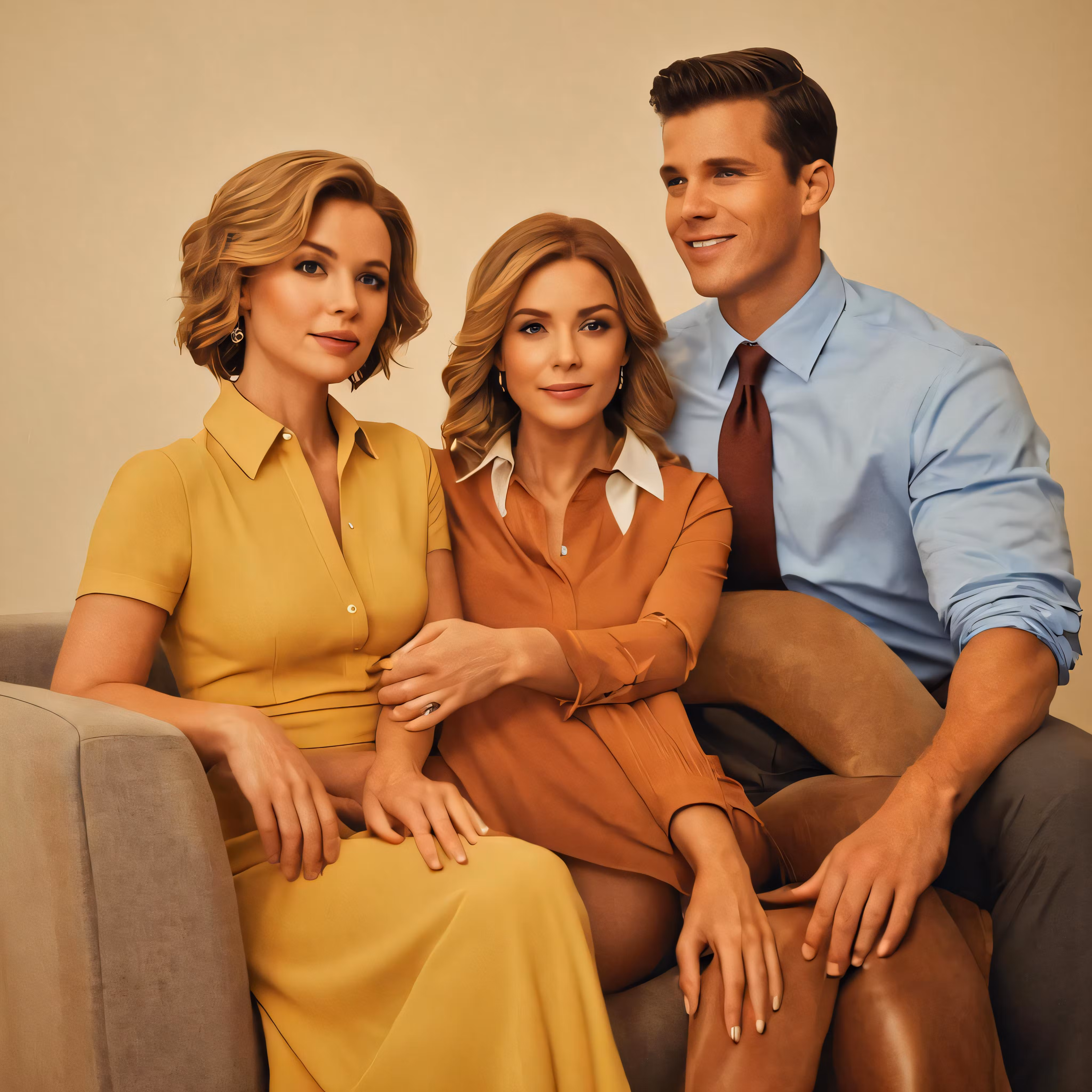 High resolution picture, free to use, two men and a woman sitting on the couch together