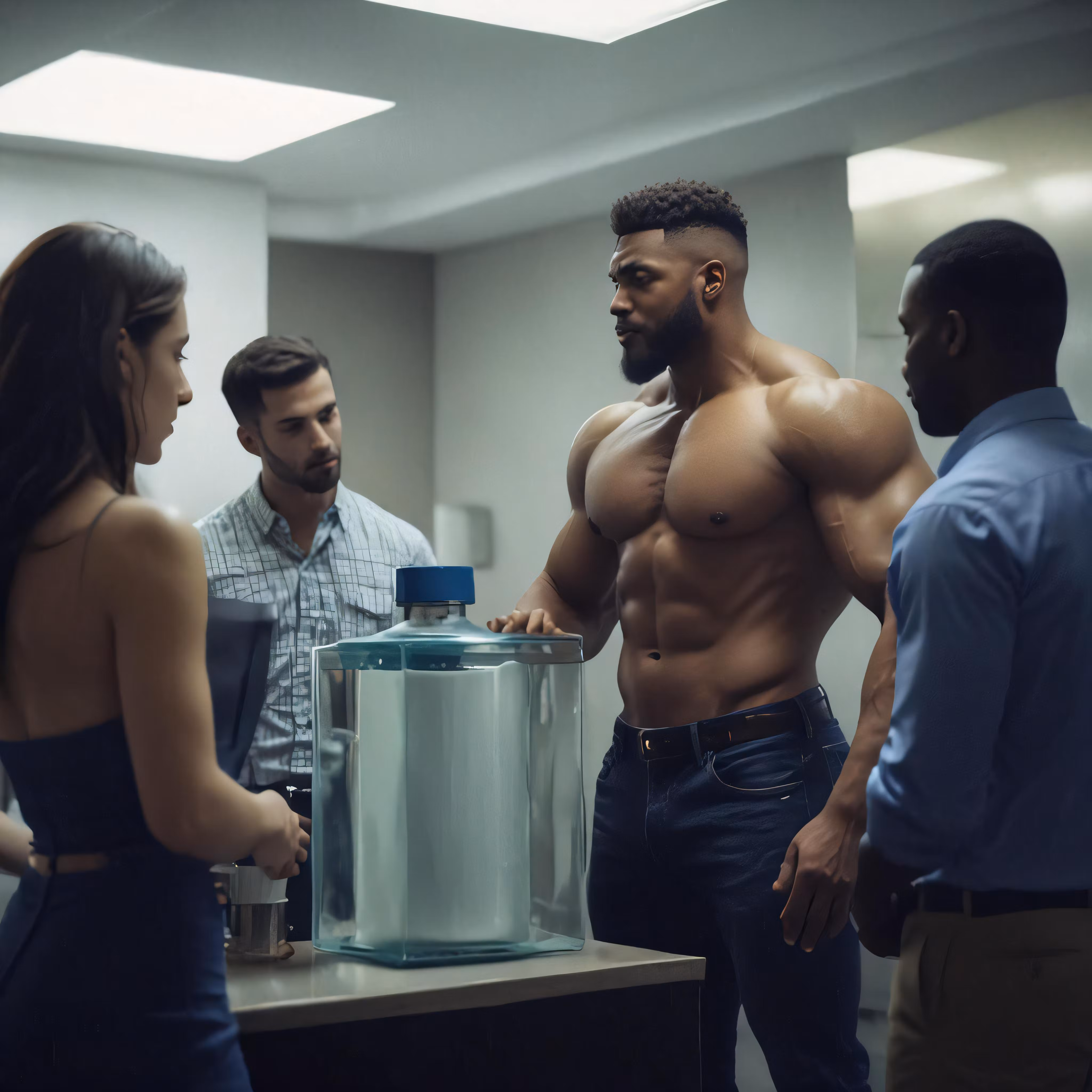 High resolution picture, free to use, two men and two women stand in front of a giant object