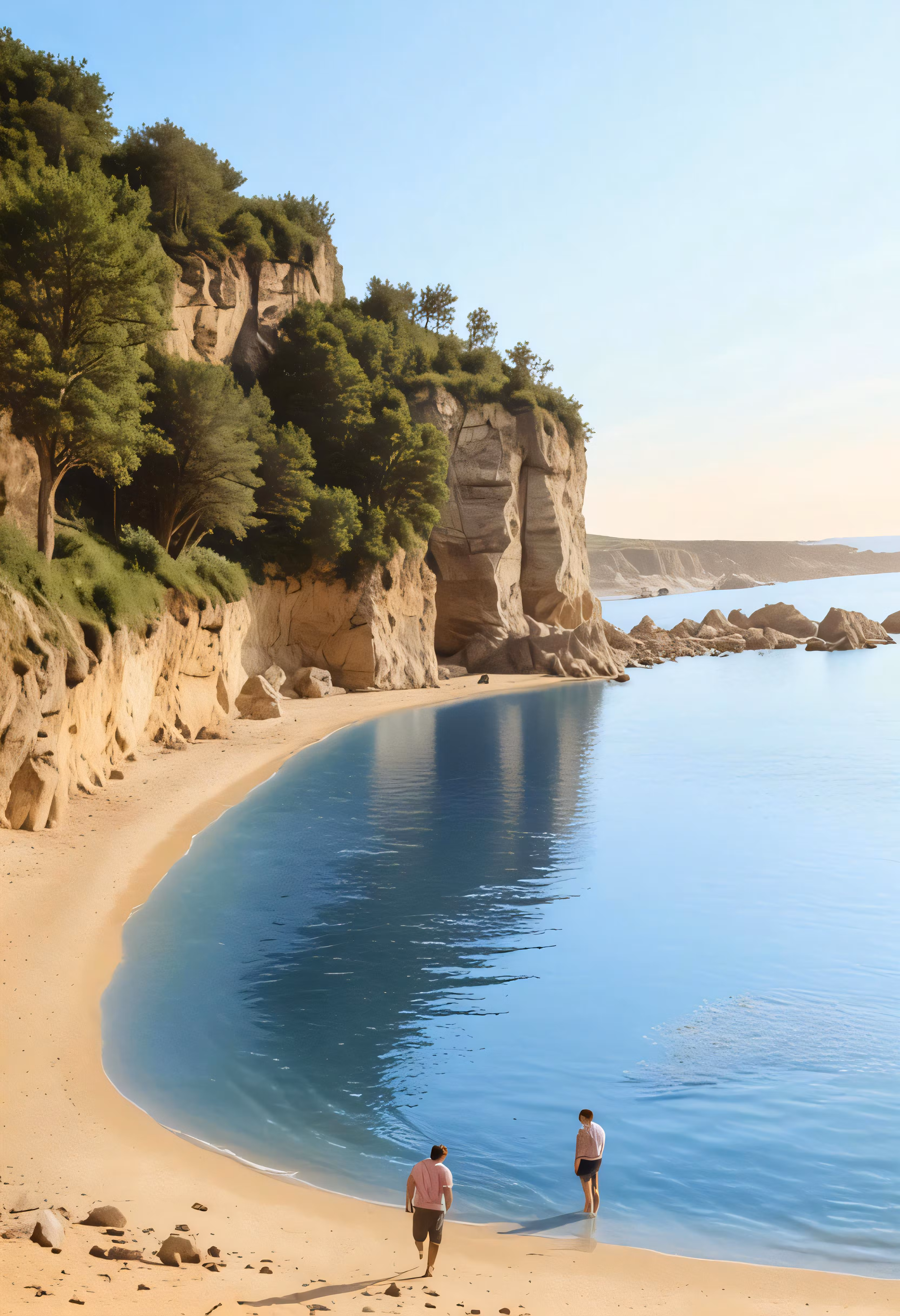 High resolution picture, free to use, two men are walking along the beach next to the water