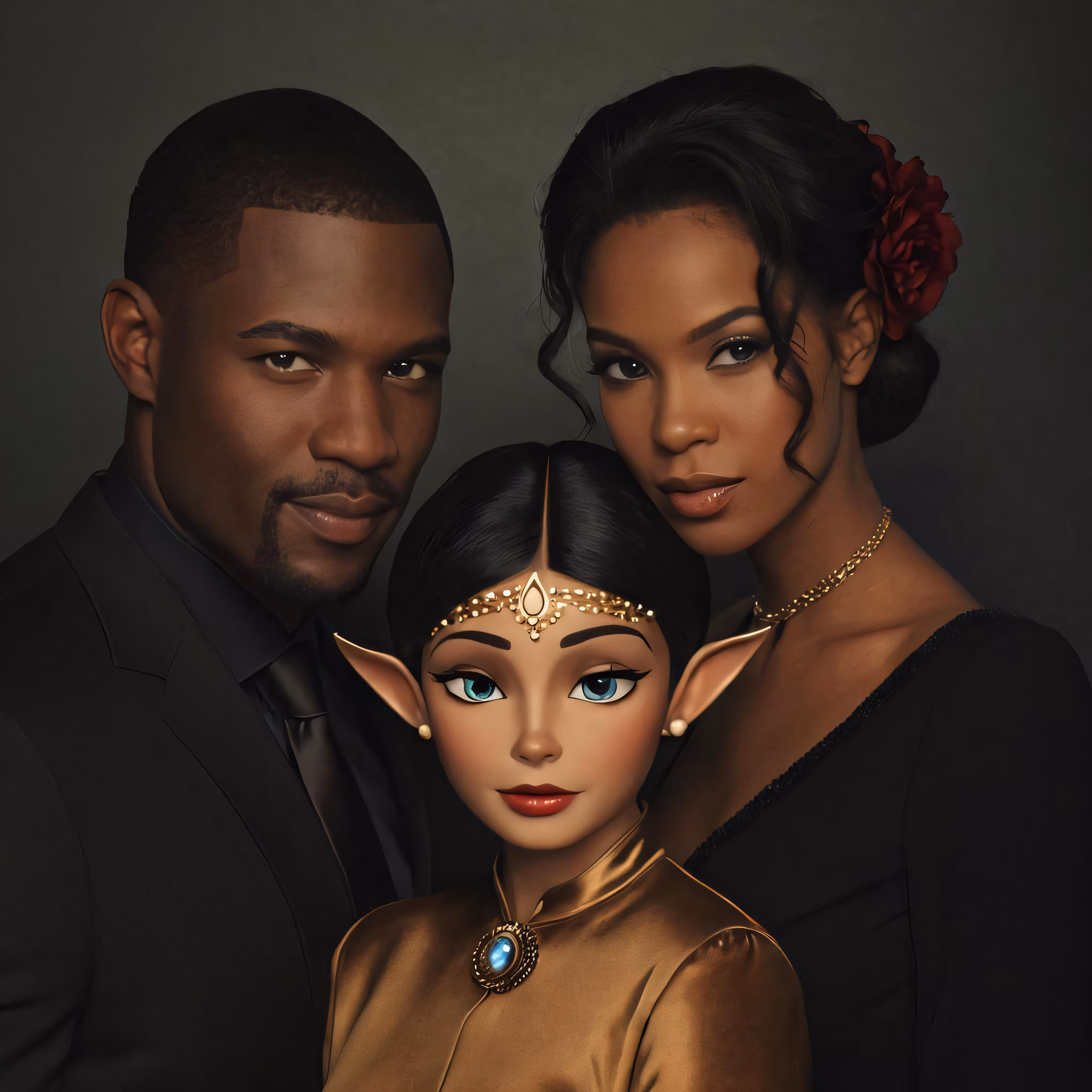 High resolution picture, free to use, two men pose together with a beautiful doll