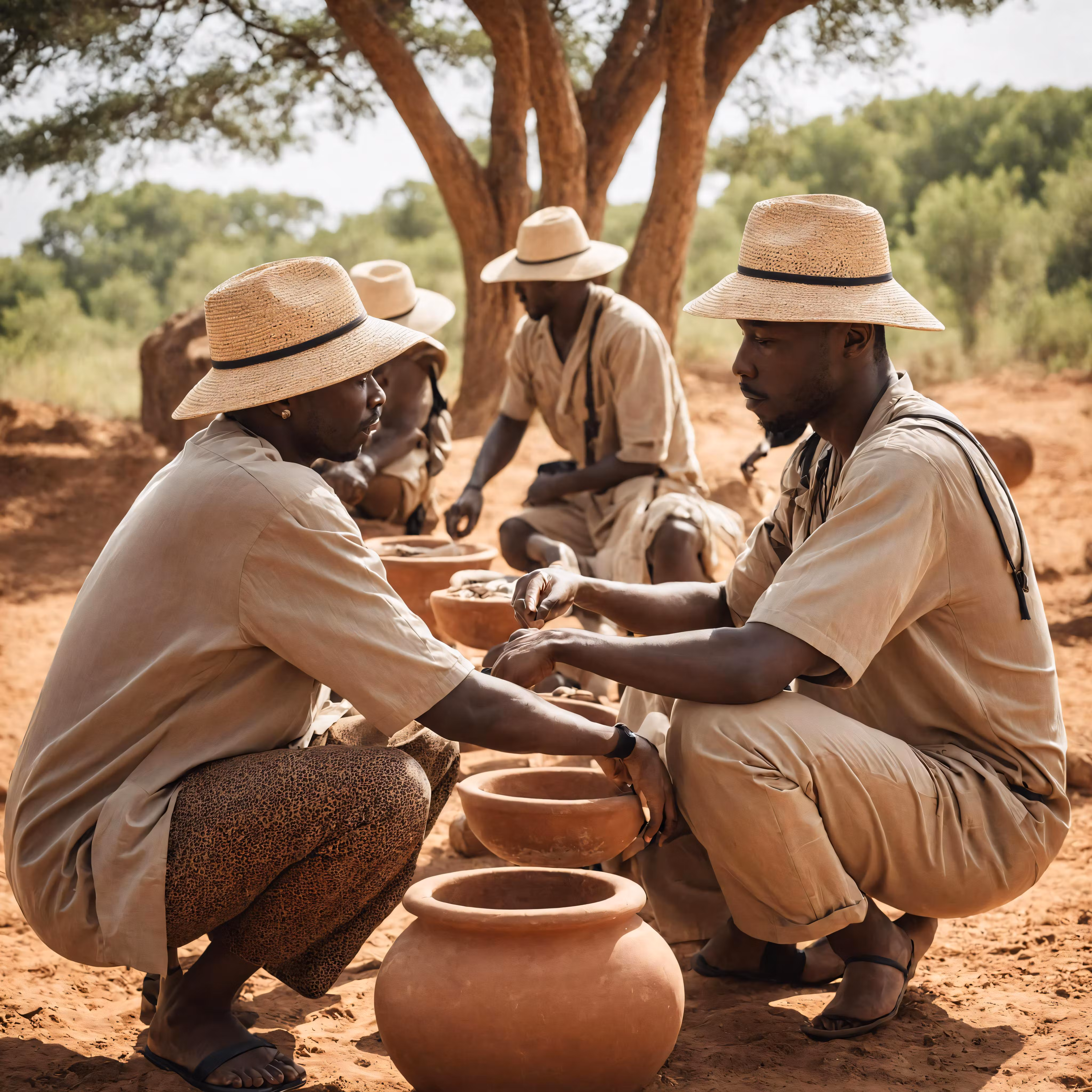 High resolution picture, free to use, two men sitting in front of a clay pot