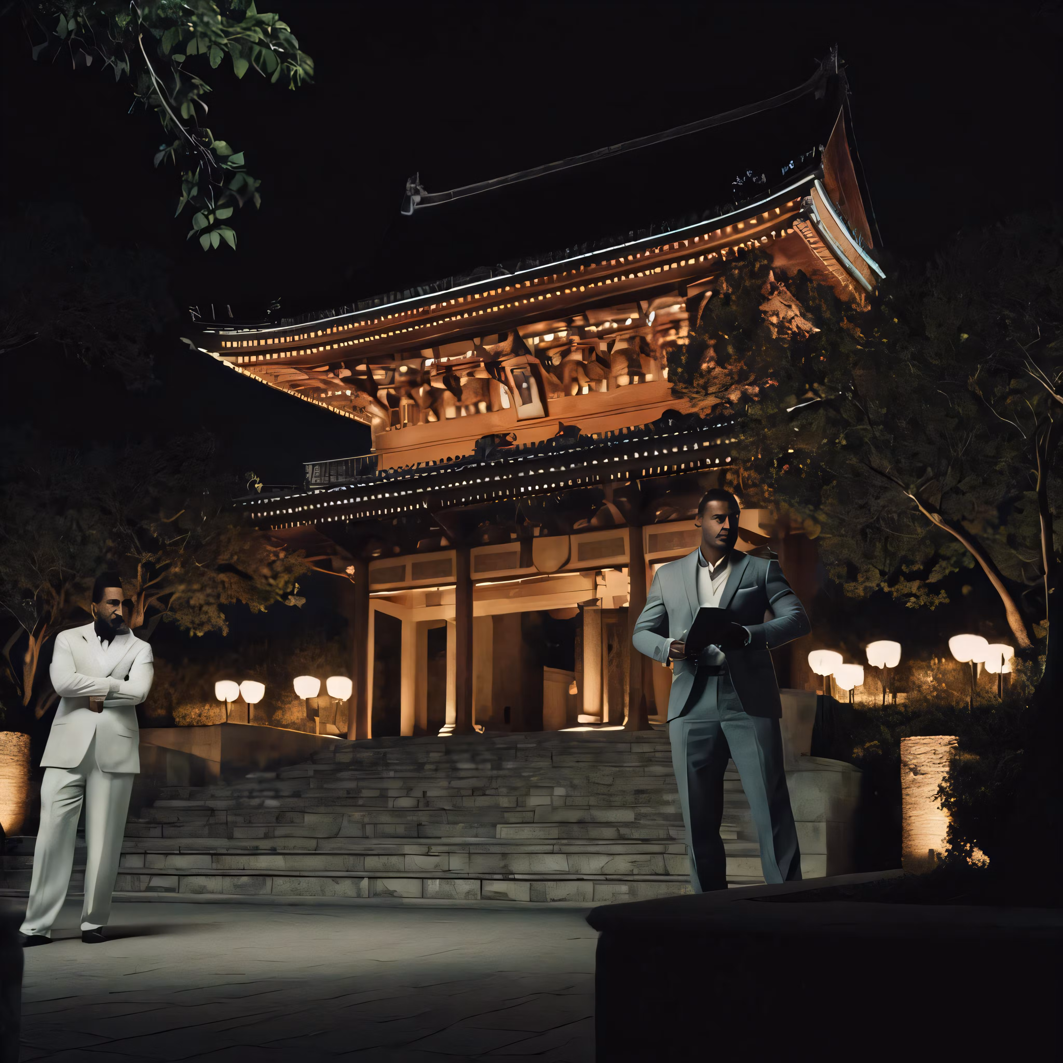 High resolution picture, free to use, two men wearing formal clothes stand in front of a building
