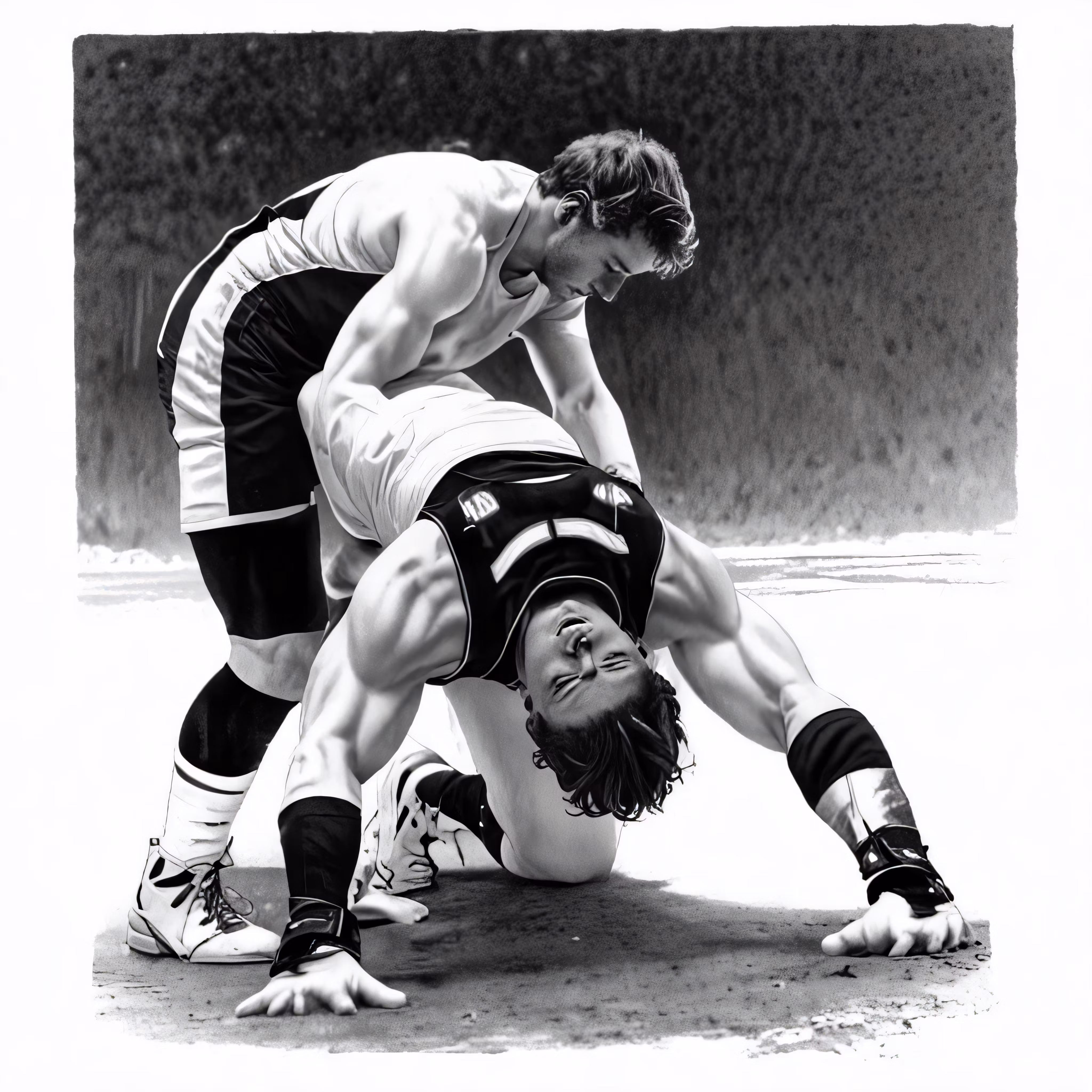 High resolution picture, free to use, two men wrestle in an obstacle competition