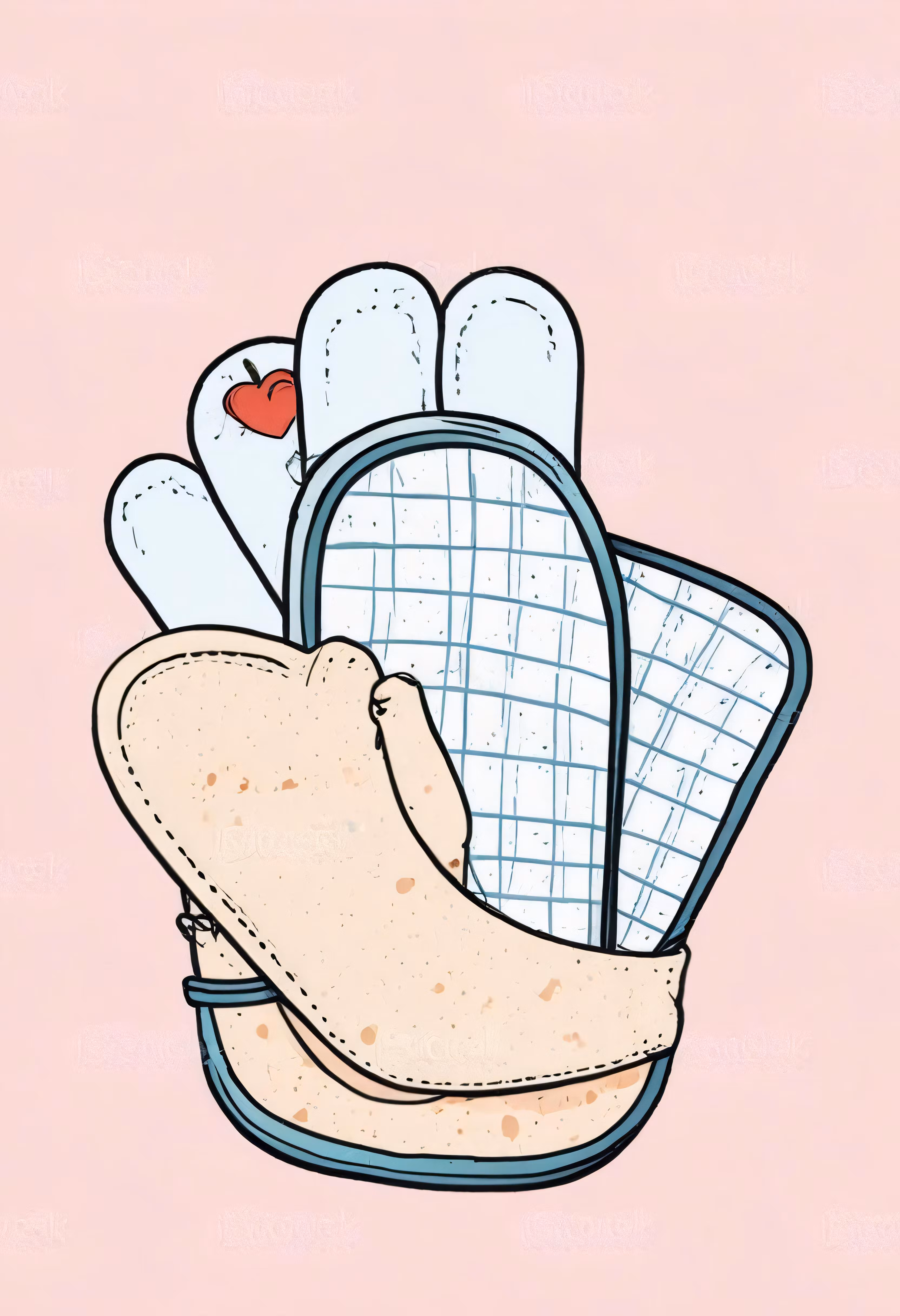 High resolution picture, free to use, two oven mitts, one with a heart and the other with a face