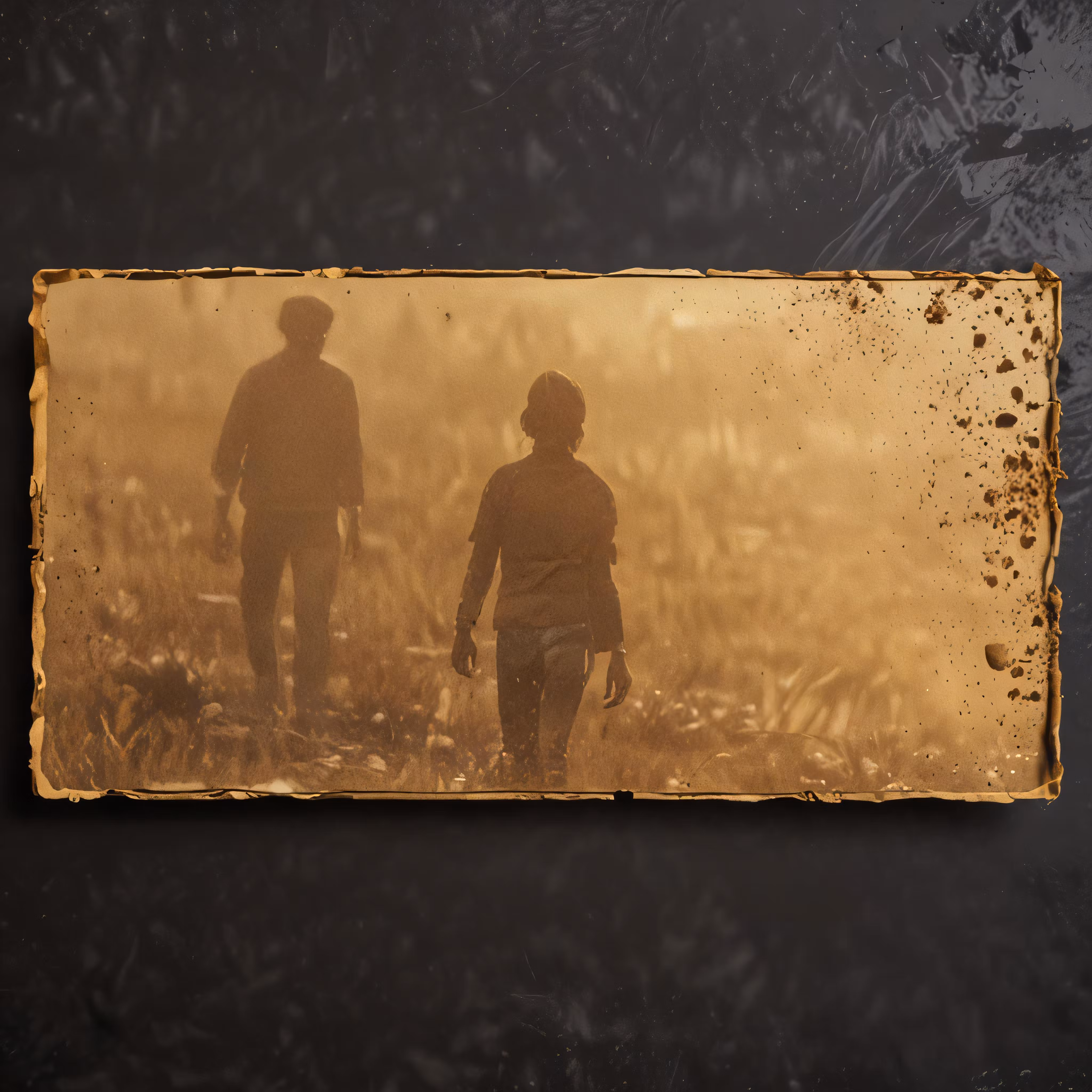 High resolution picture, free to use, two people are walking through a field under an umbrella