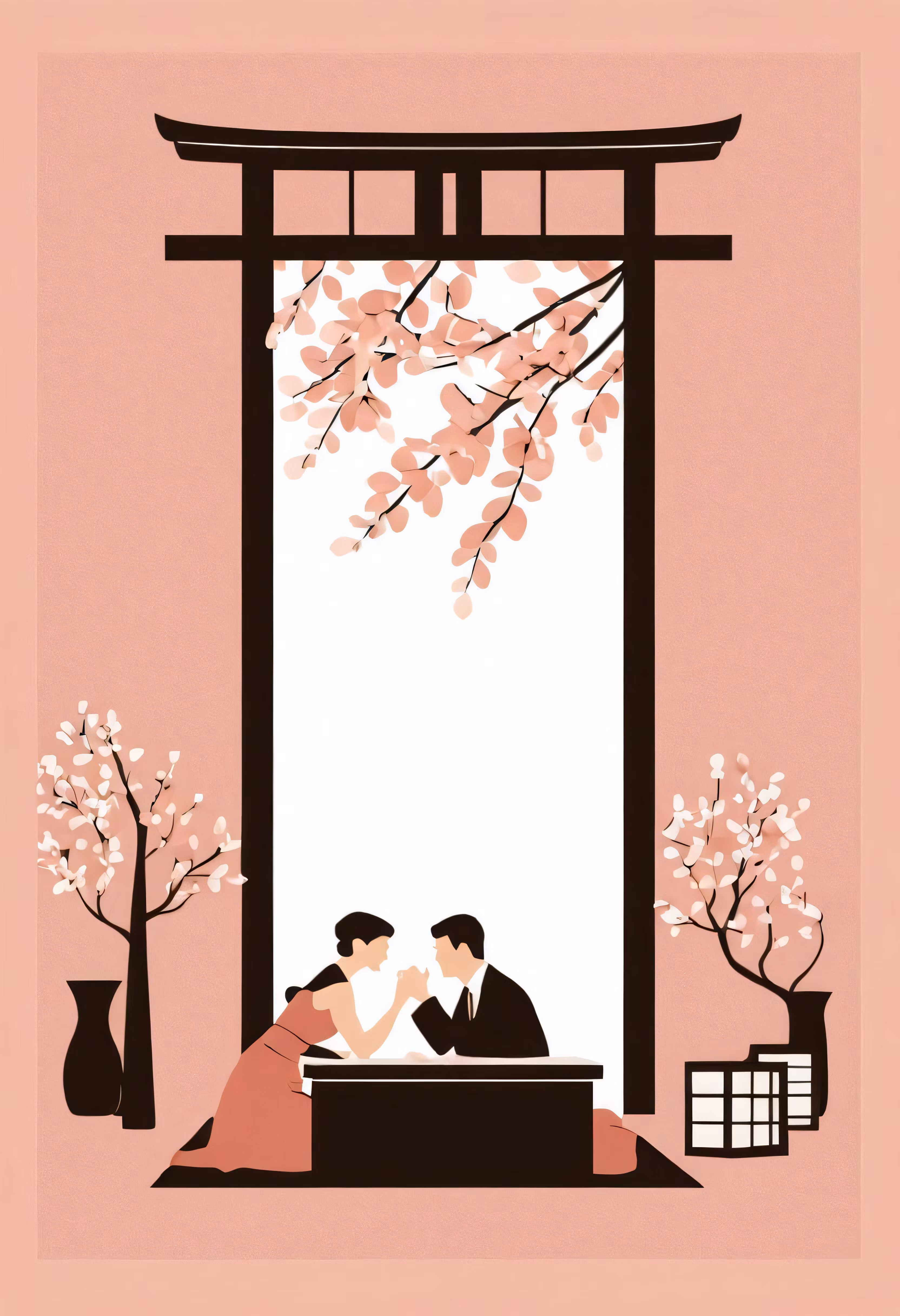 High resolution picture, free to use, two people sitting on a bench in front of an asian window