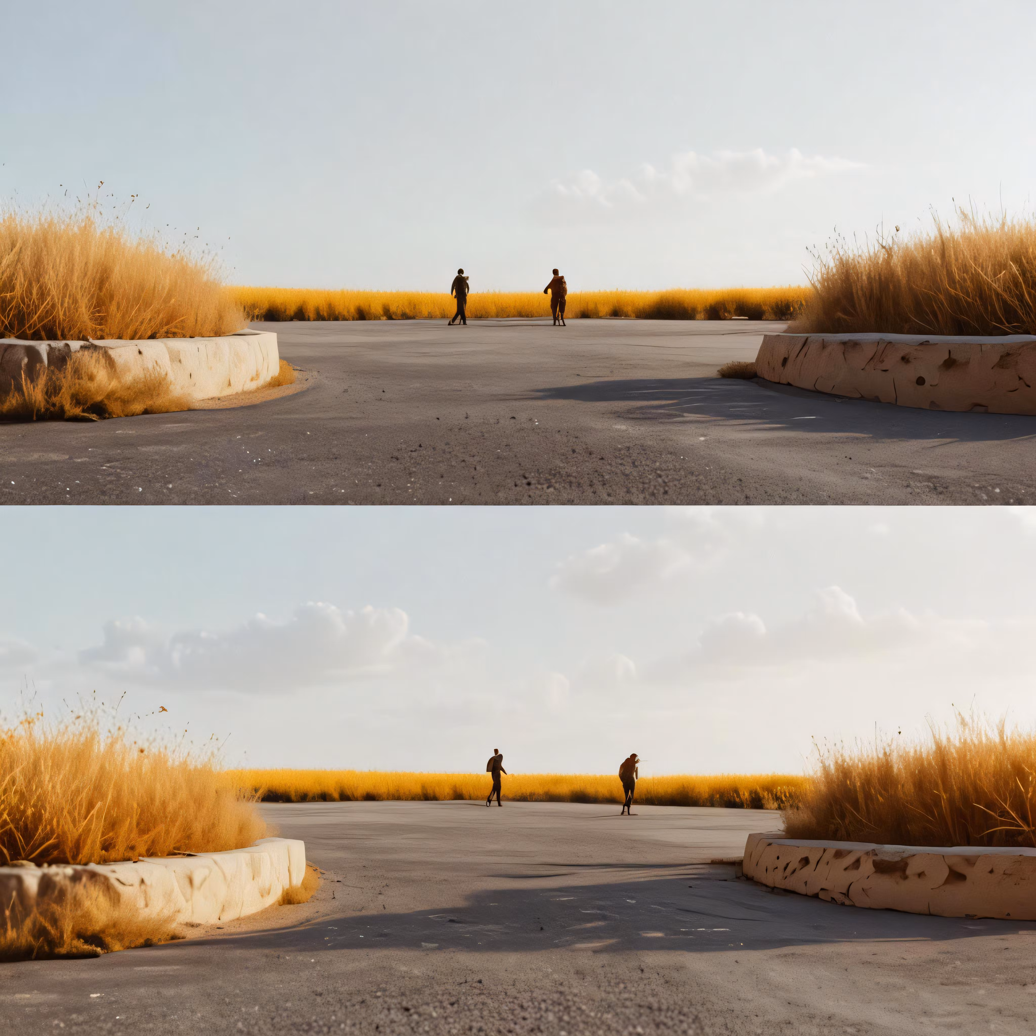 High resolution picture, free to use, two people standing on the edge of an empty road
