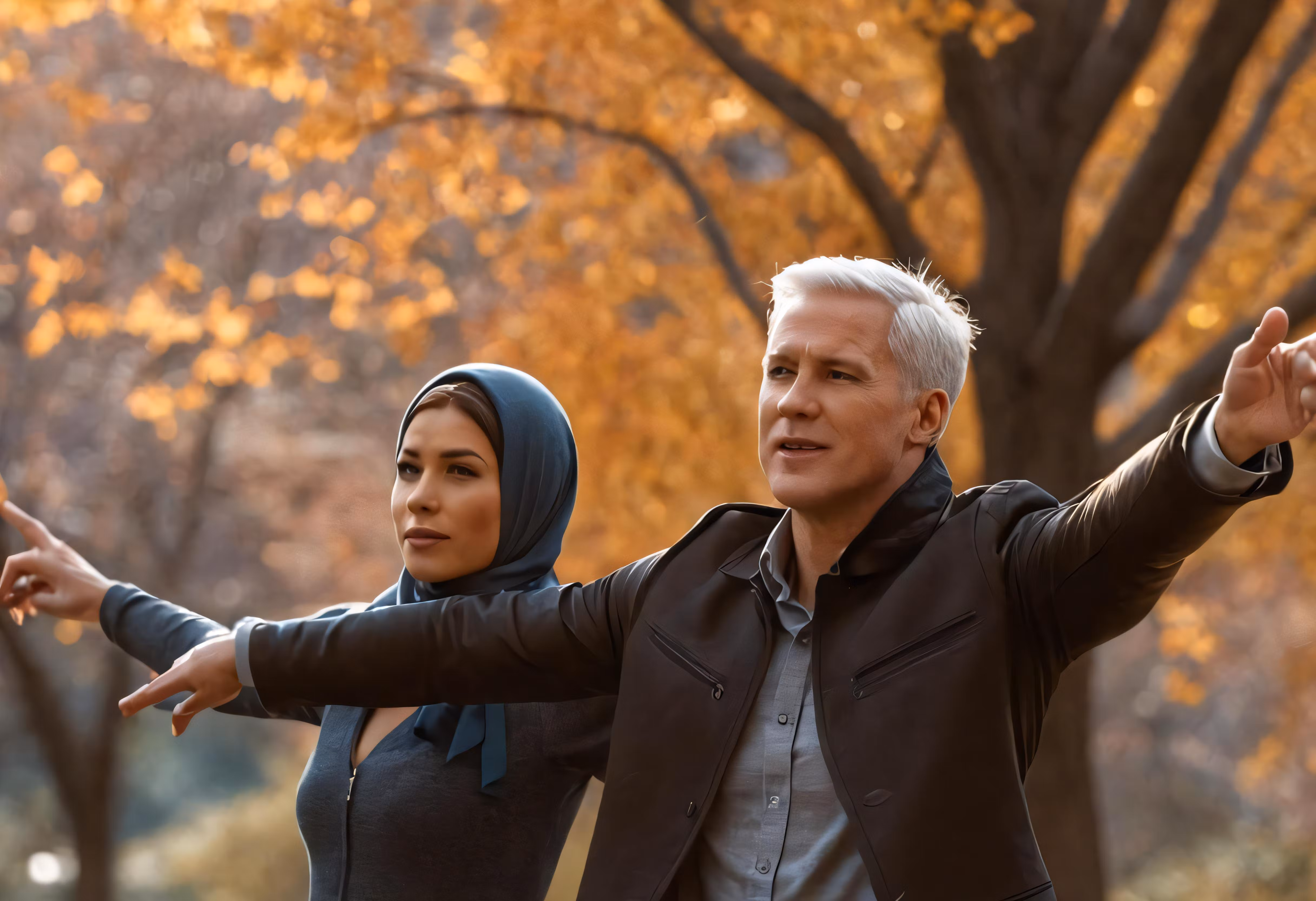 High resolution picture, free to use, two people standing together with their arms extended and their hands out