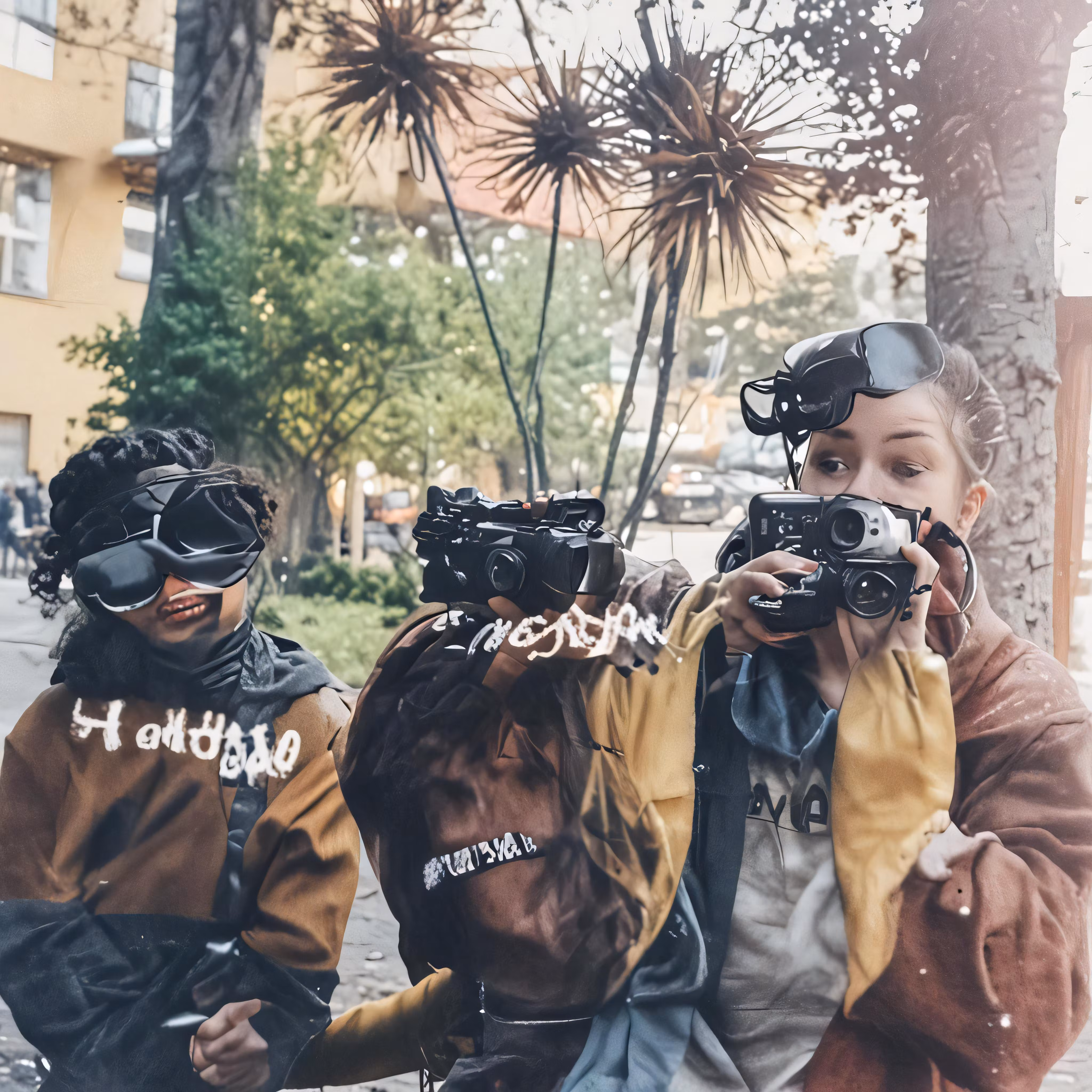 High resolution picture, free to use, two people taking pictures on their own with the same camera