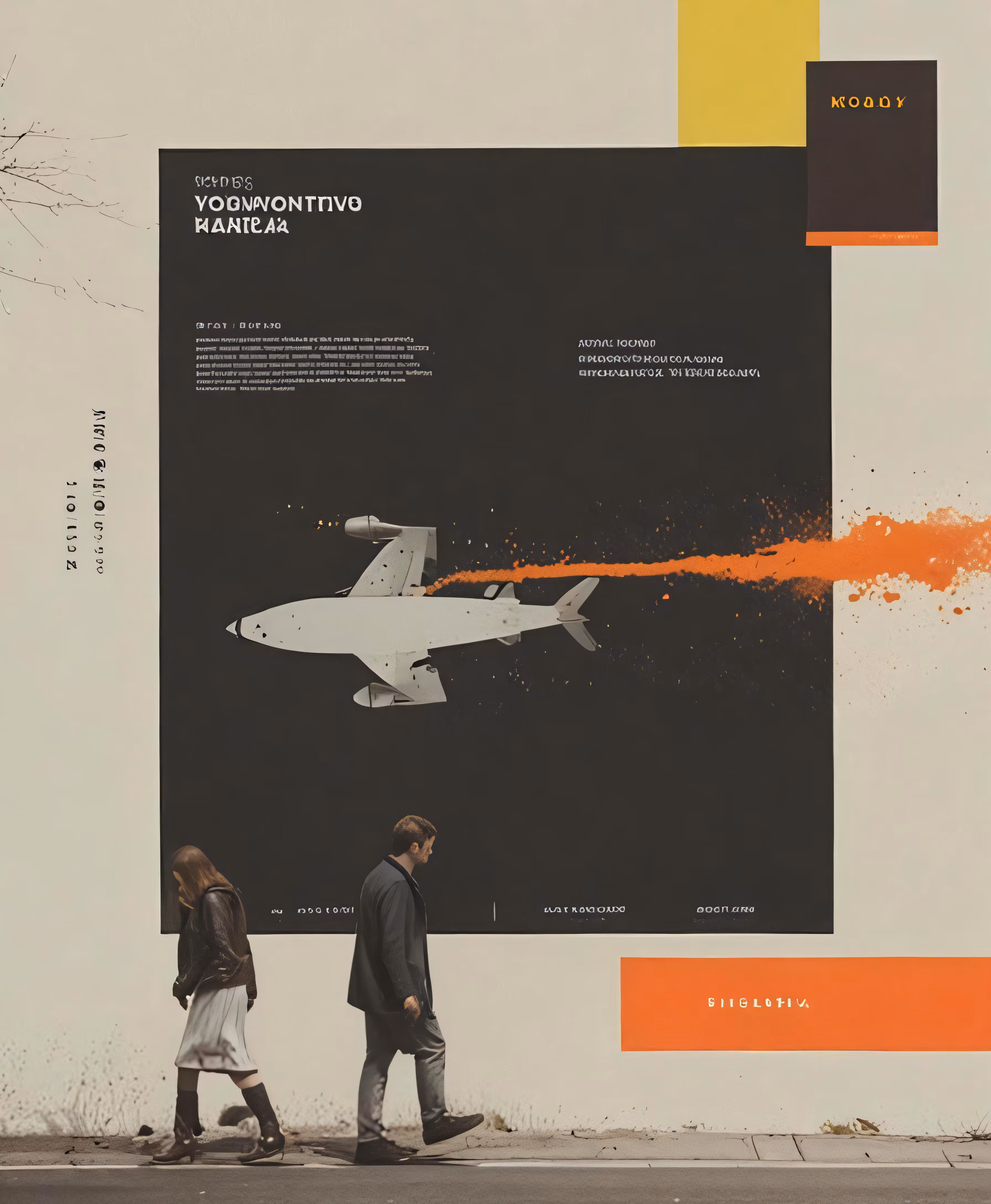 High resolution picture, free to use, two people walk past an advertisement on the side of a building