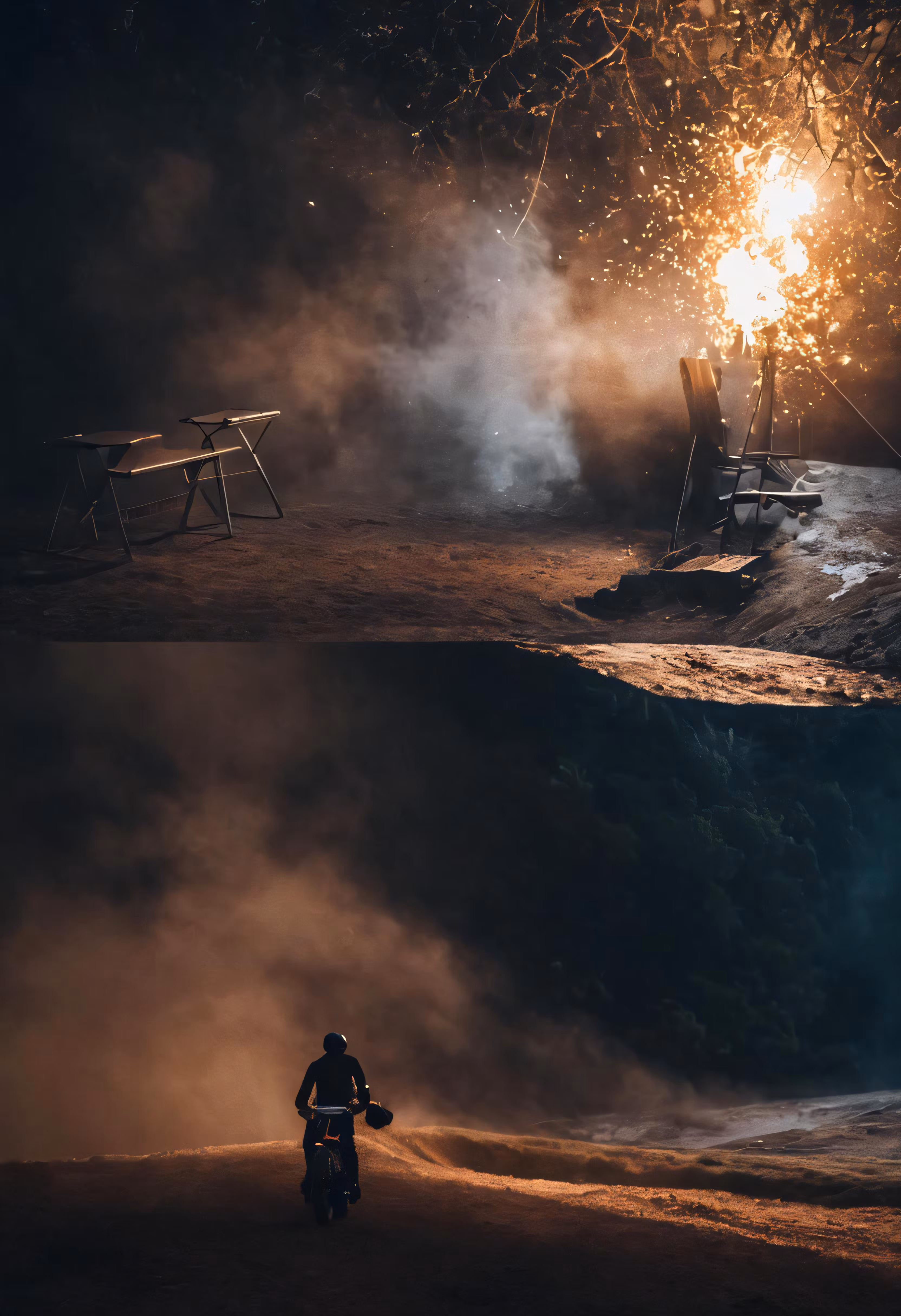 High resolution picture, free to use, two photos of a man riding a bike at night