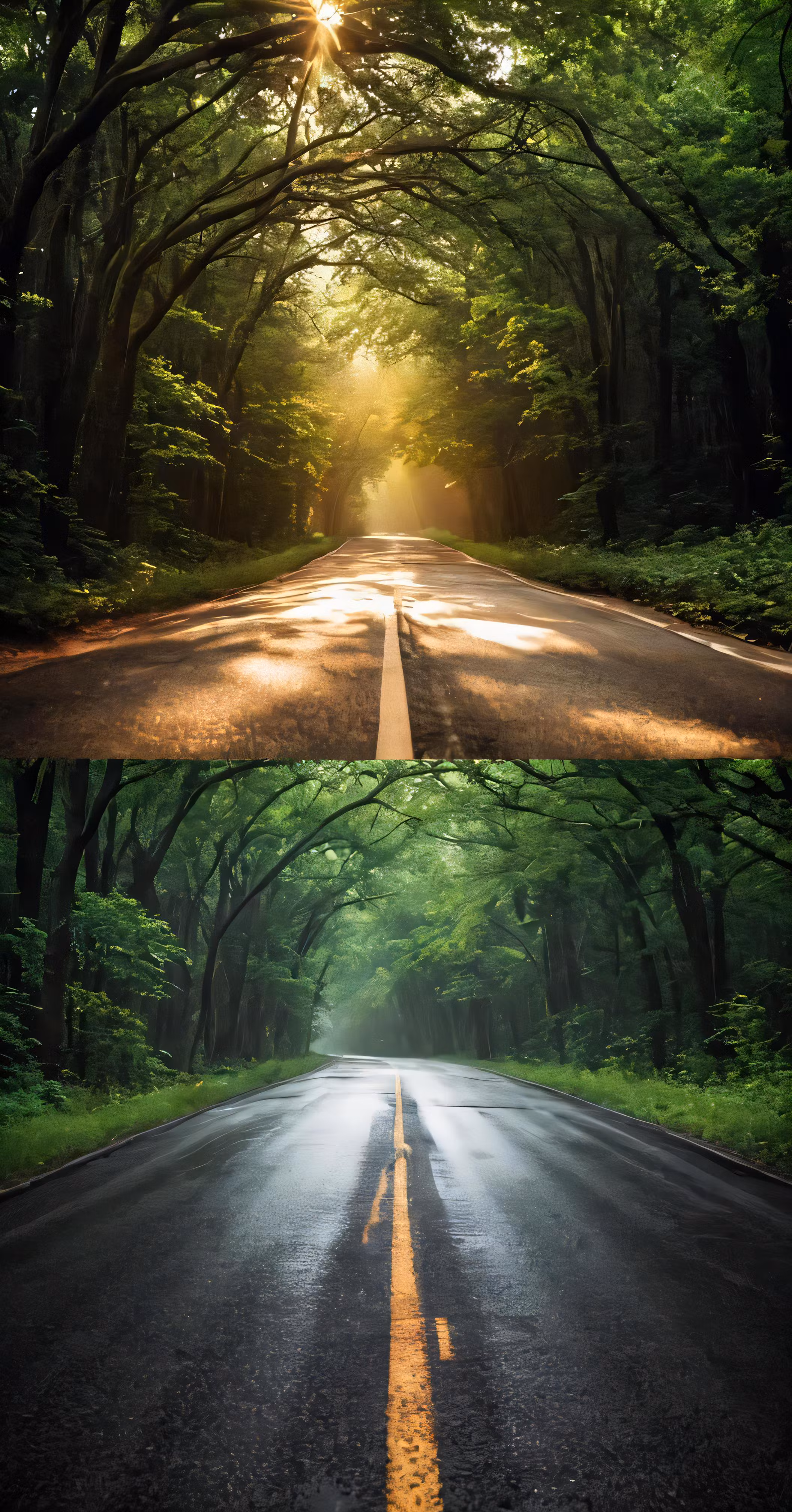 High resolution picture, free to use, two pictures of a road and some trees