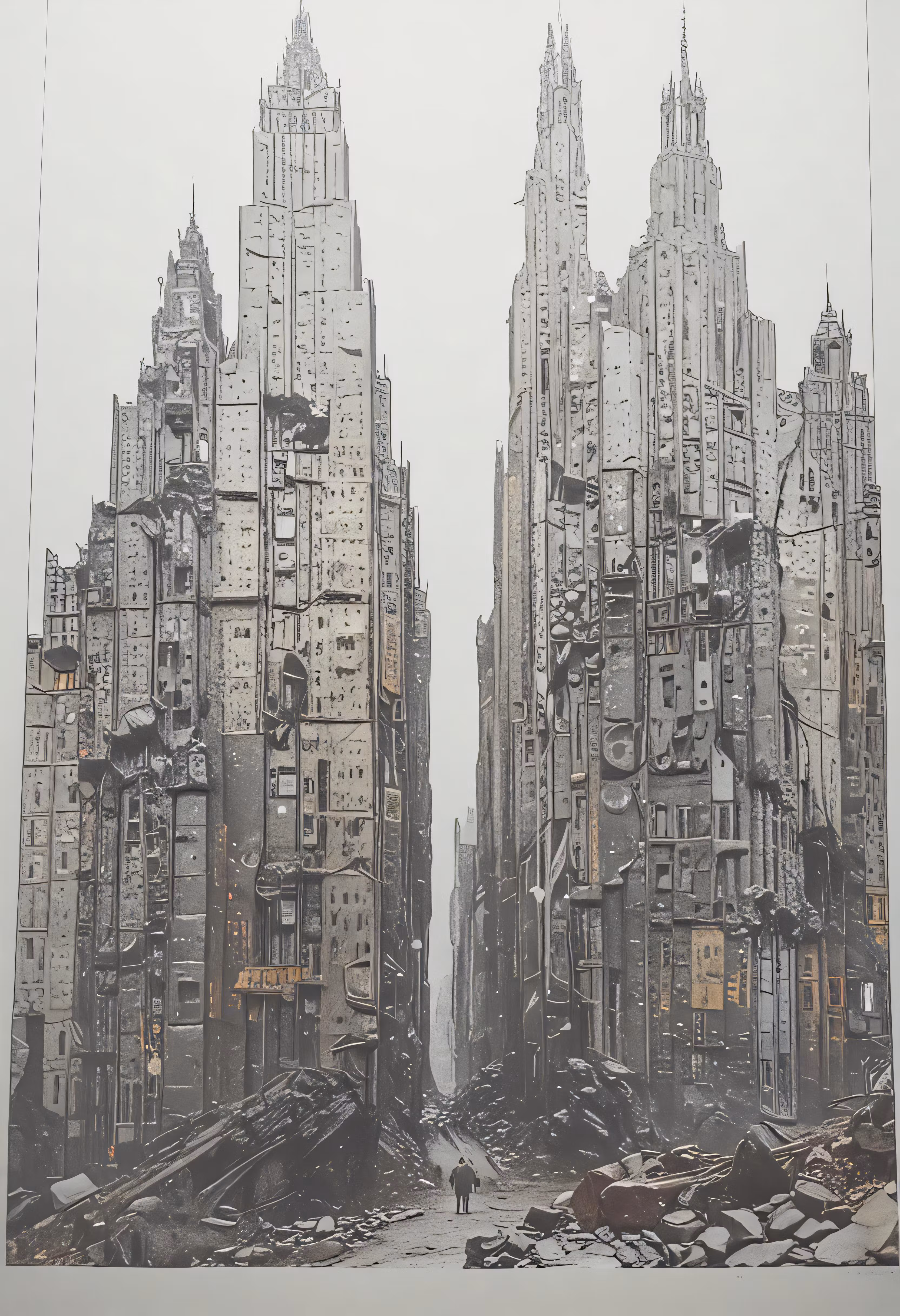 High resolution picture, free to use, two pictures of city buildings on a snowy day