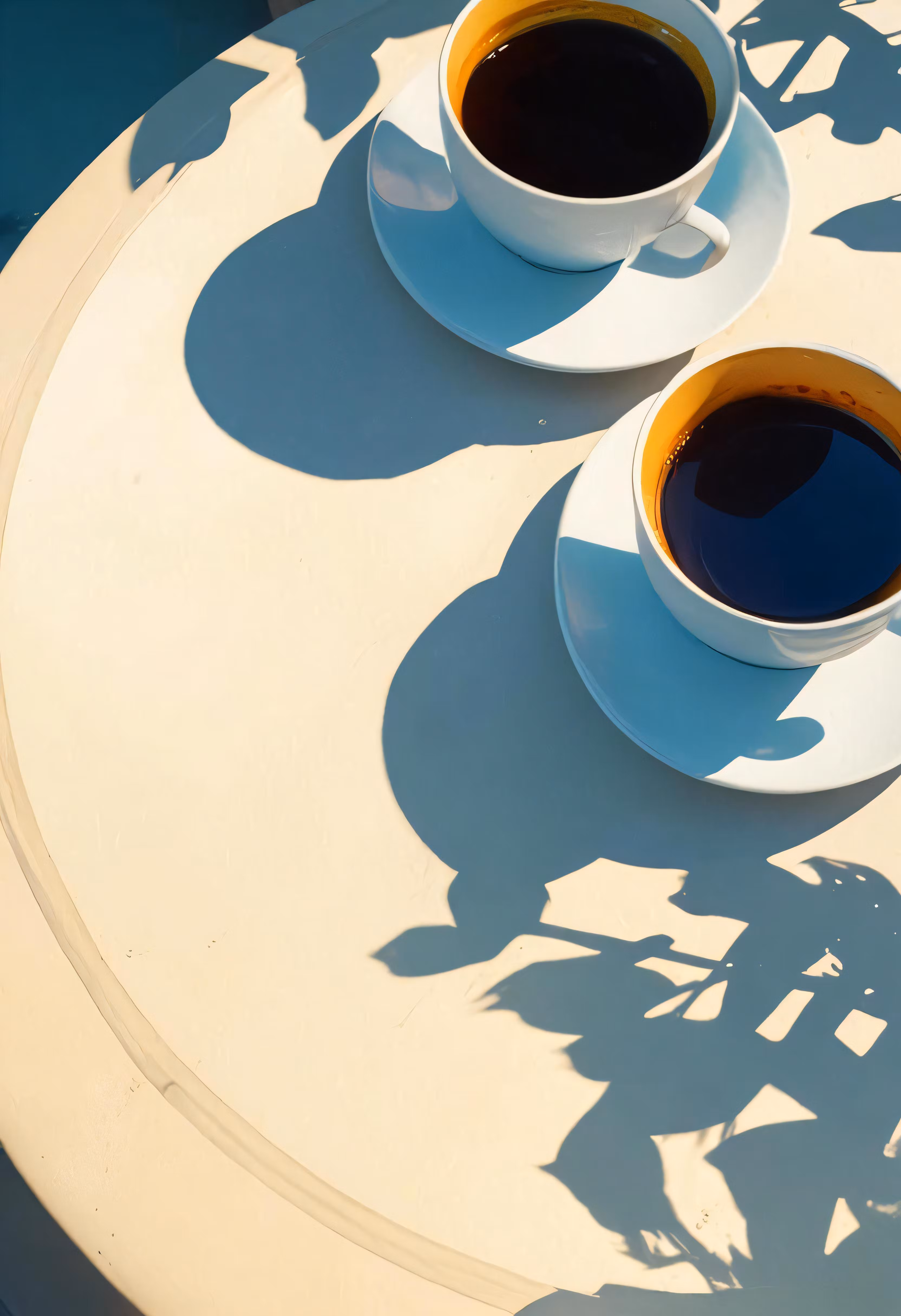 High resolution picture, free to use, two plates of coffee sitting on a table