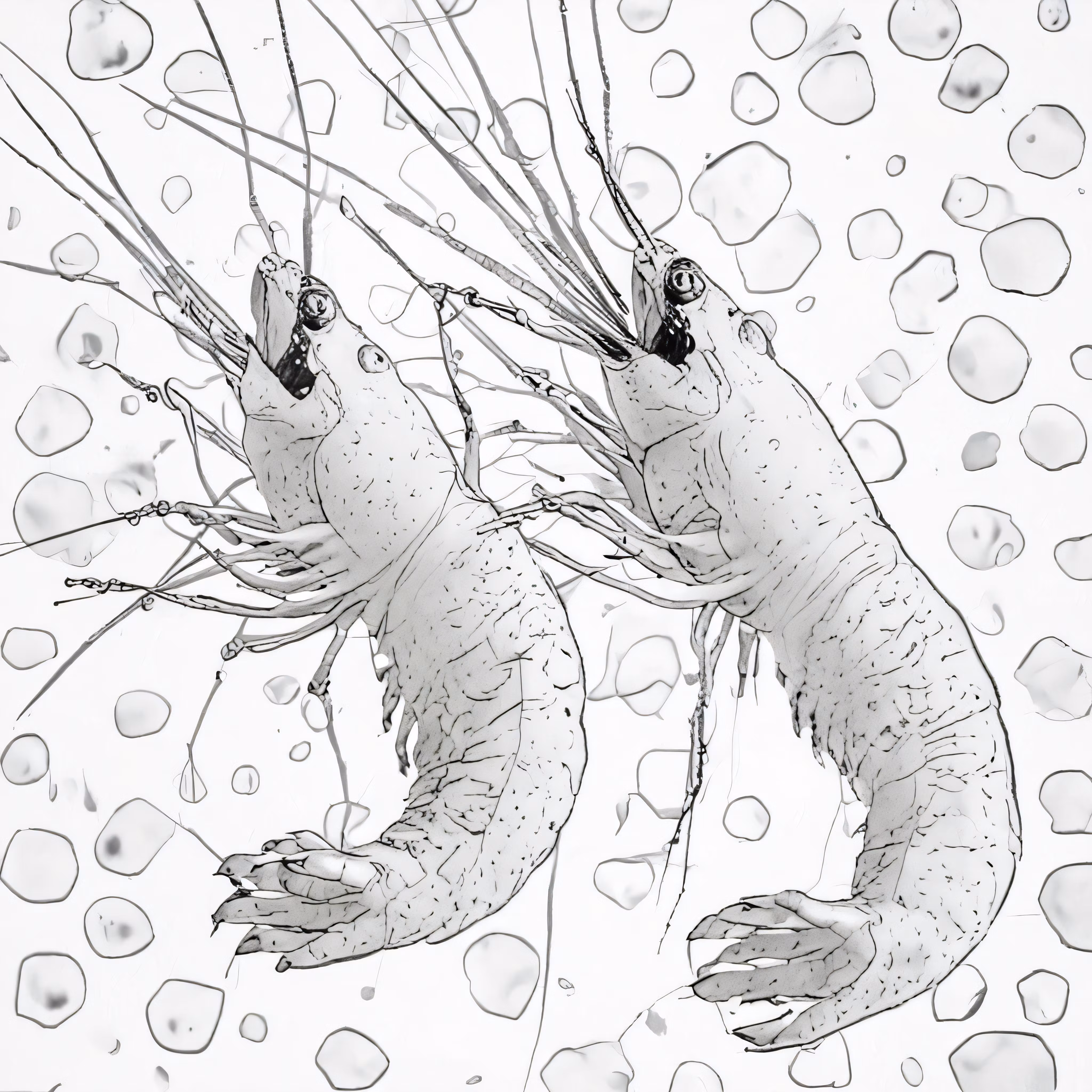 High resolution picture, free to use, two shrimp are swimming in water, with bubbles around