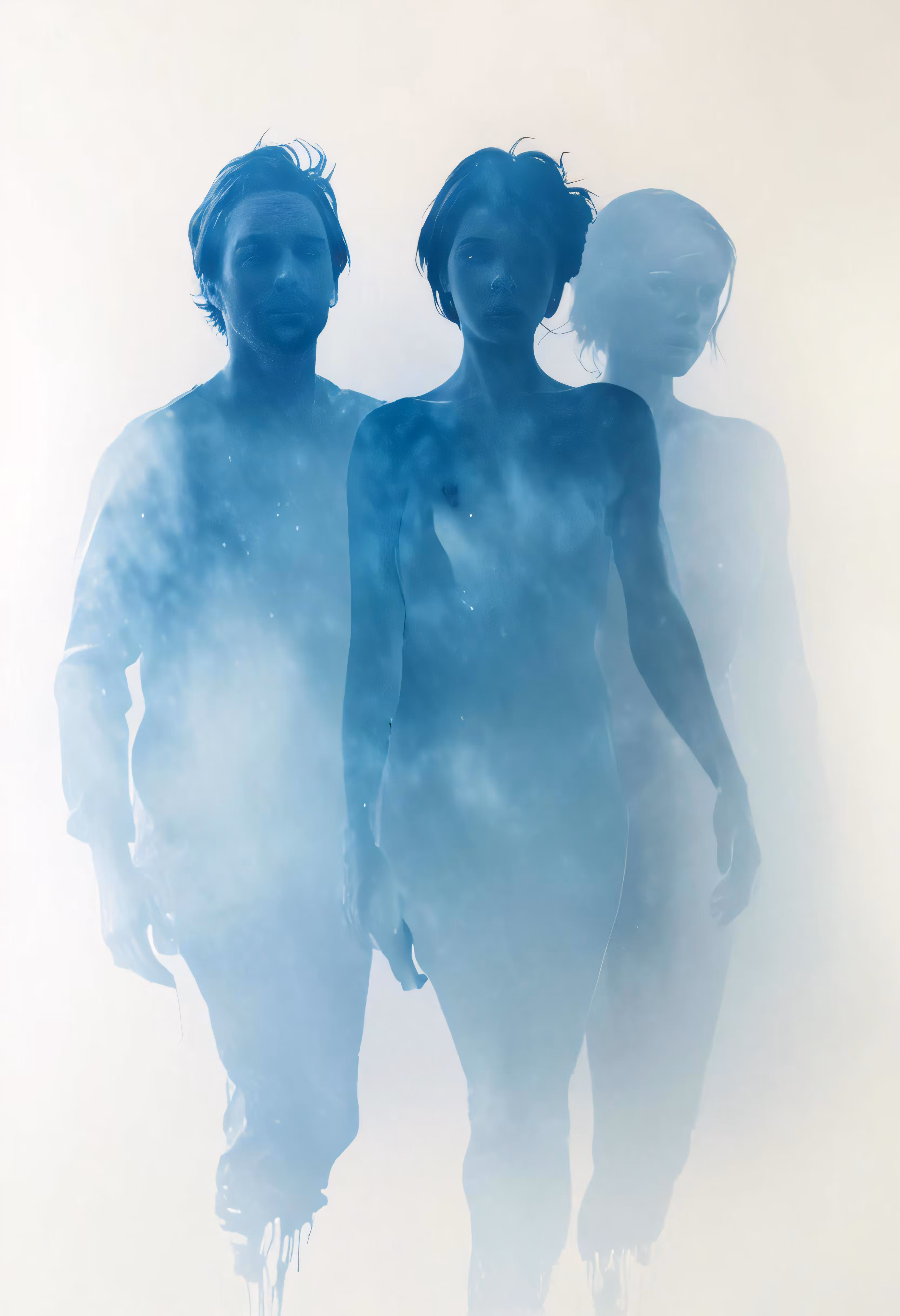 High resolution picture, free to use, two silhouettes of two people on a foggy day