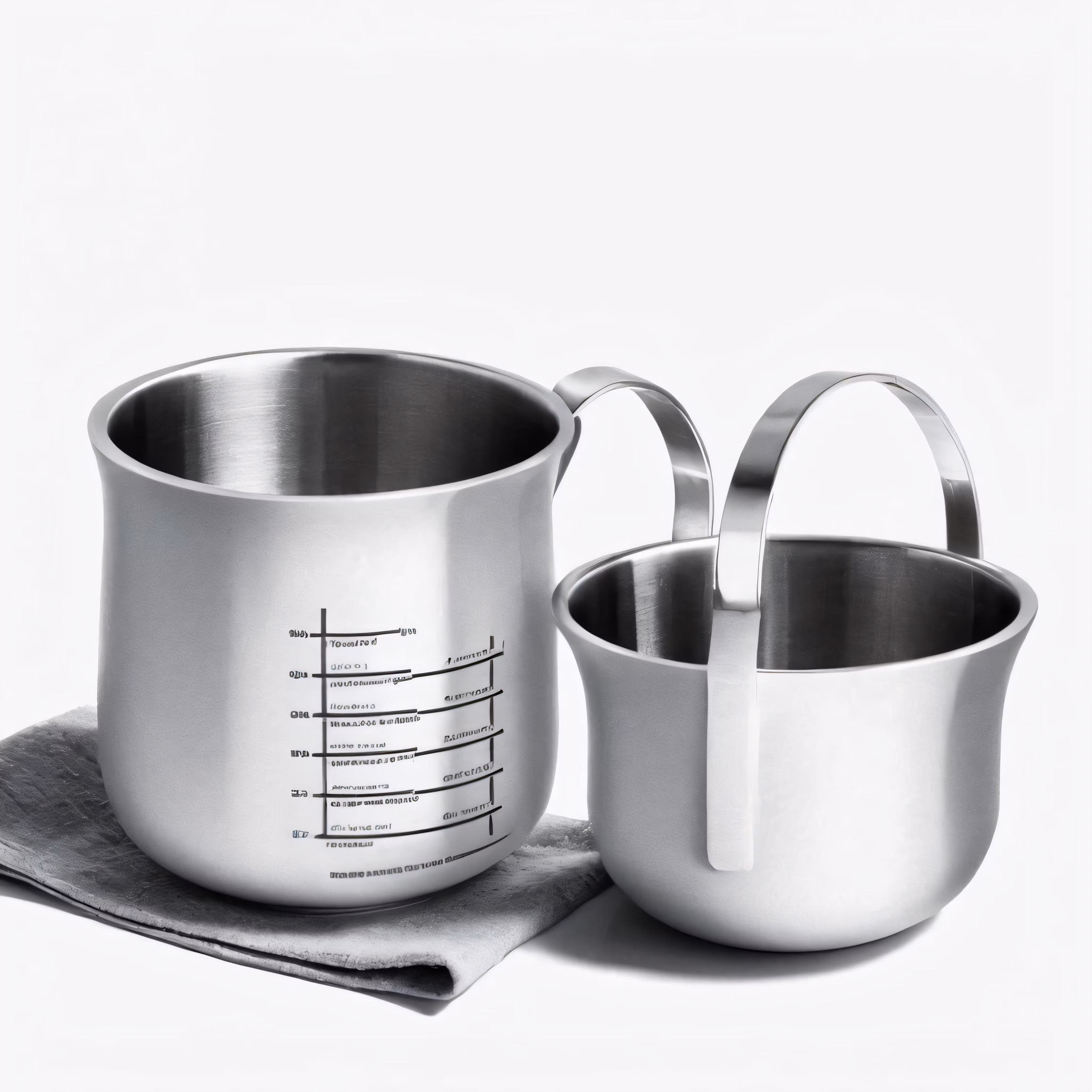 High resolution picture, free to use, two silver pots sitting on top of a white background