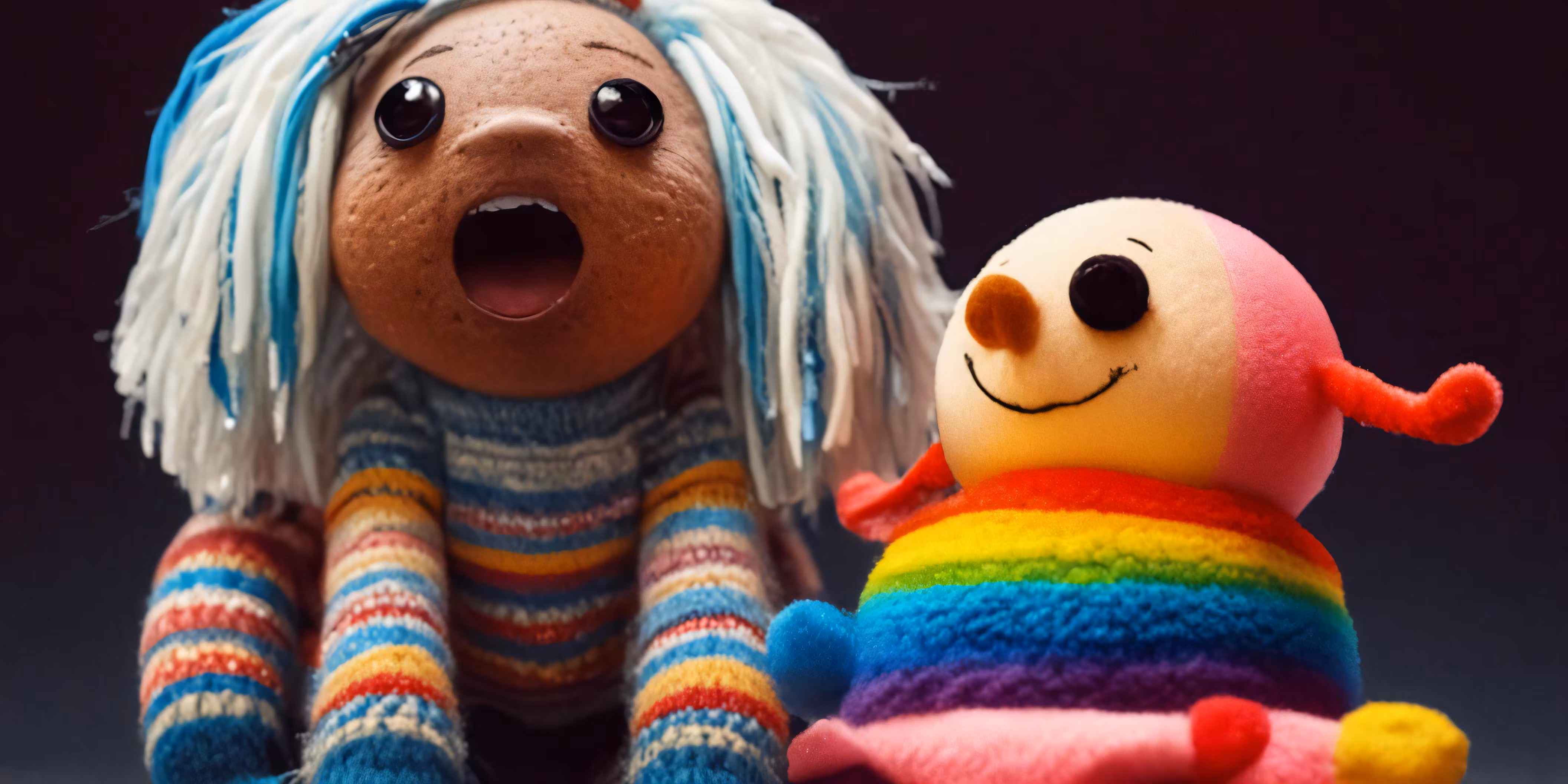 High resolution picture, free to use, two stuffed animals one with a brightly colored outfit