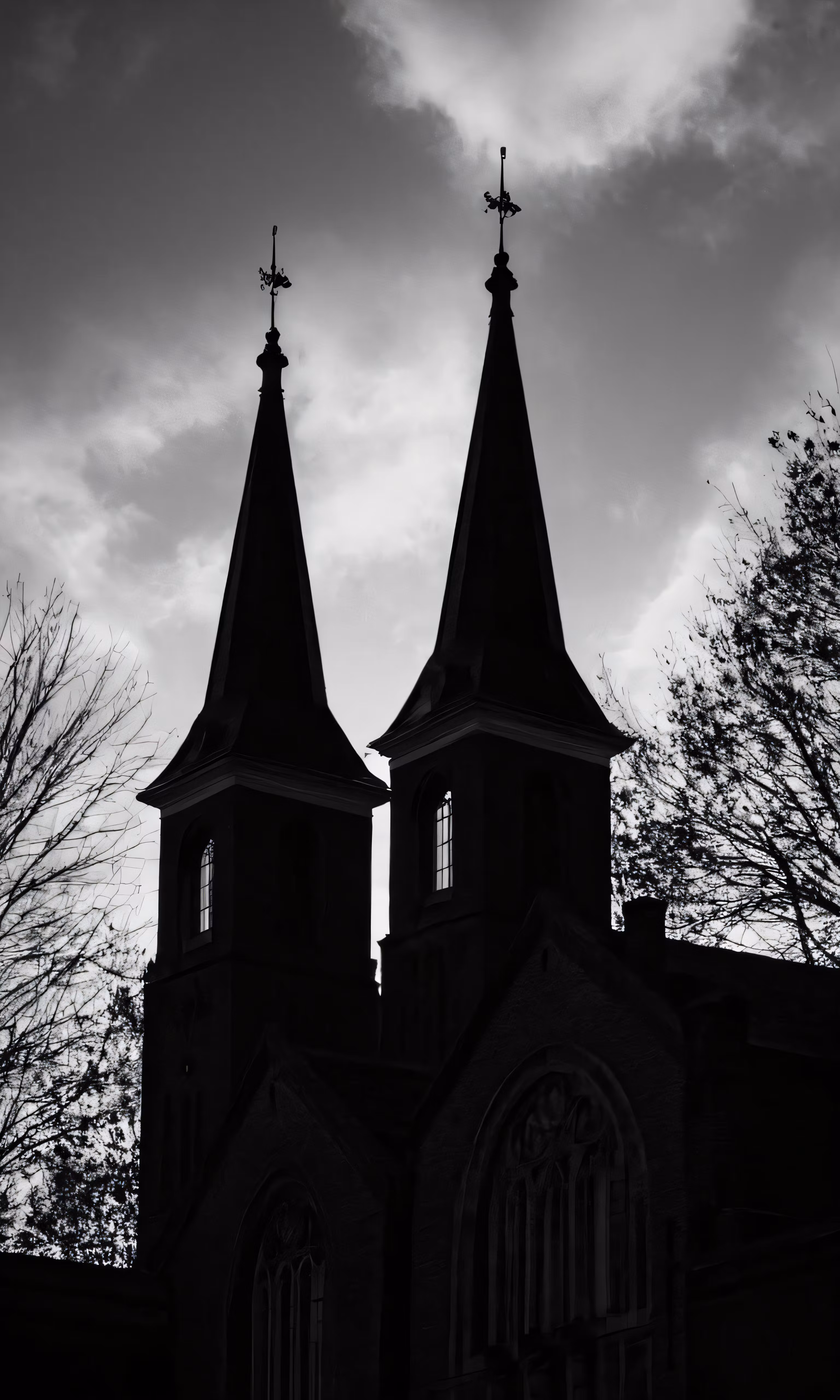 High resolution picture, free to use, two towers of a church in a cloudy sky
