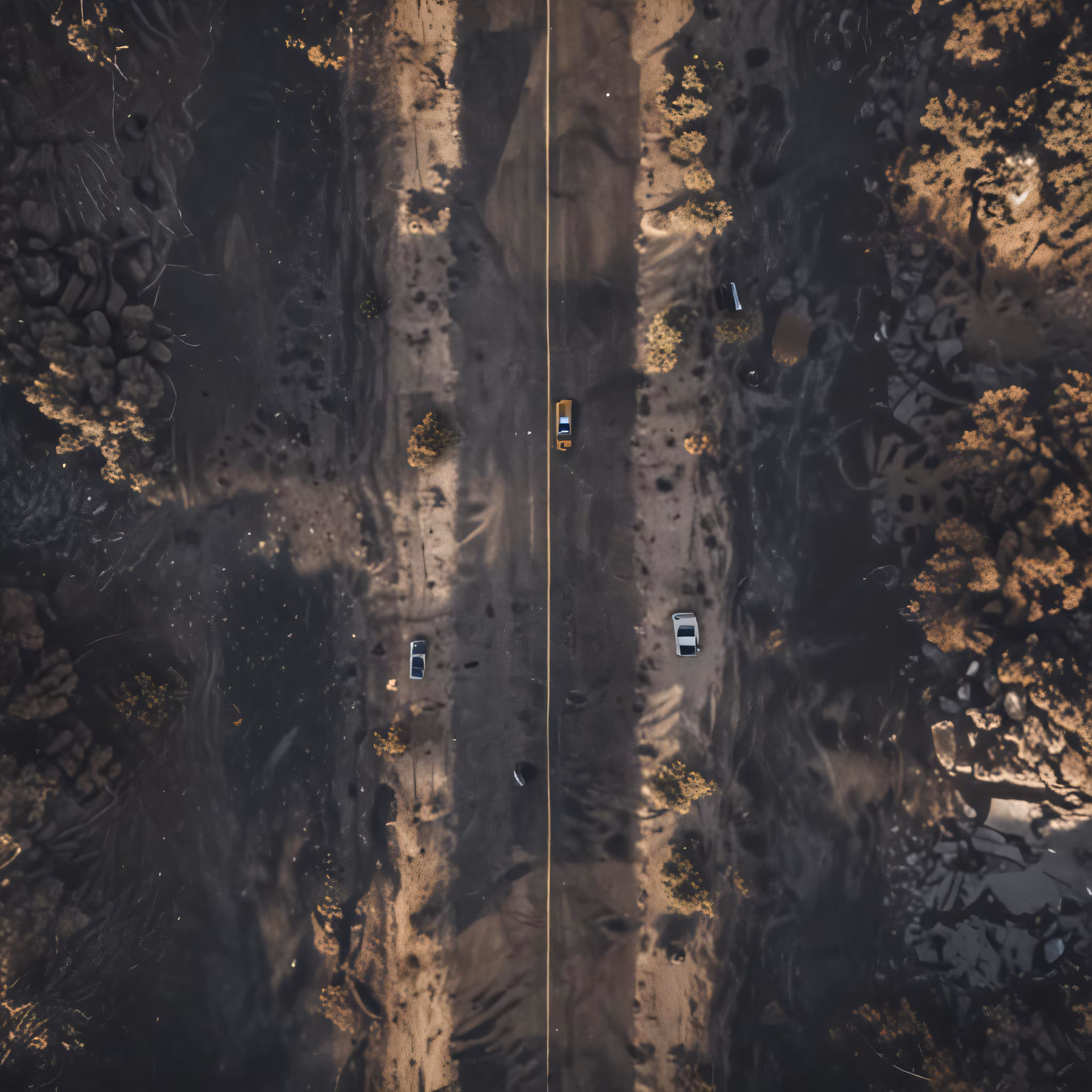 High resolution picture, free to use, two vehicles driving on a dirt road next to a forest