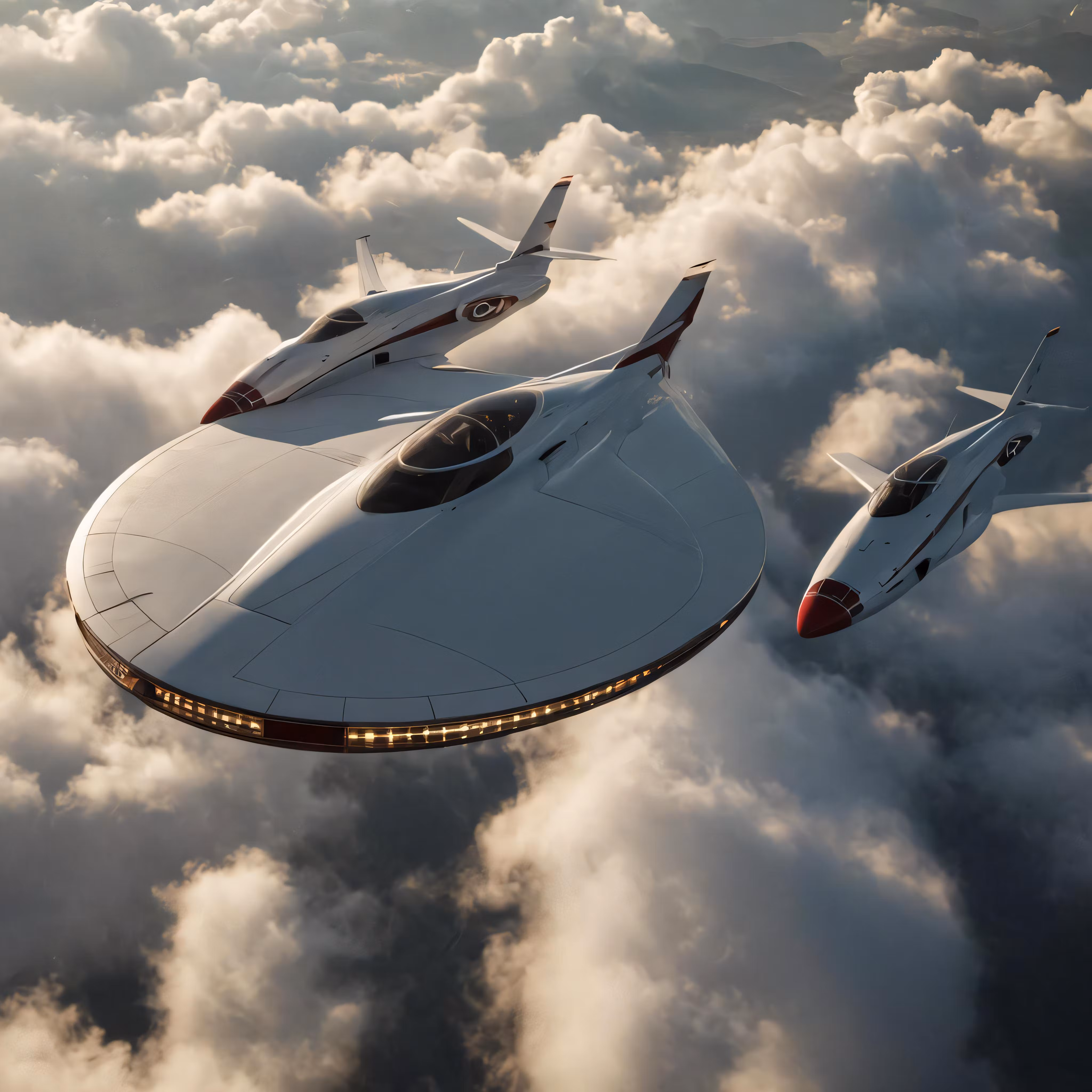 High resolution picture, free to use, two white aircrafts flying above the clouds together