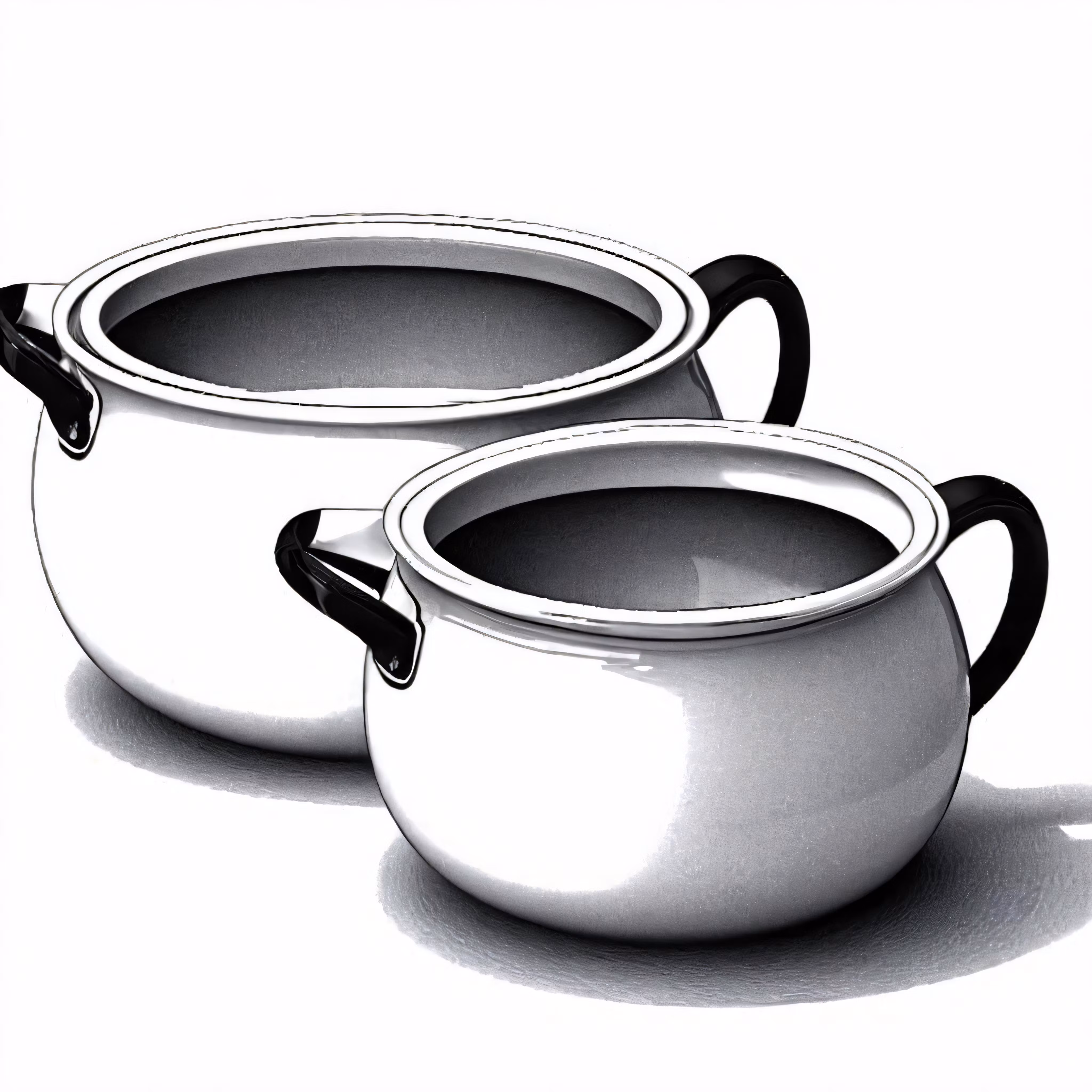 High resolution picture, free to use, two white bowls with black handles on a white background