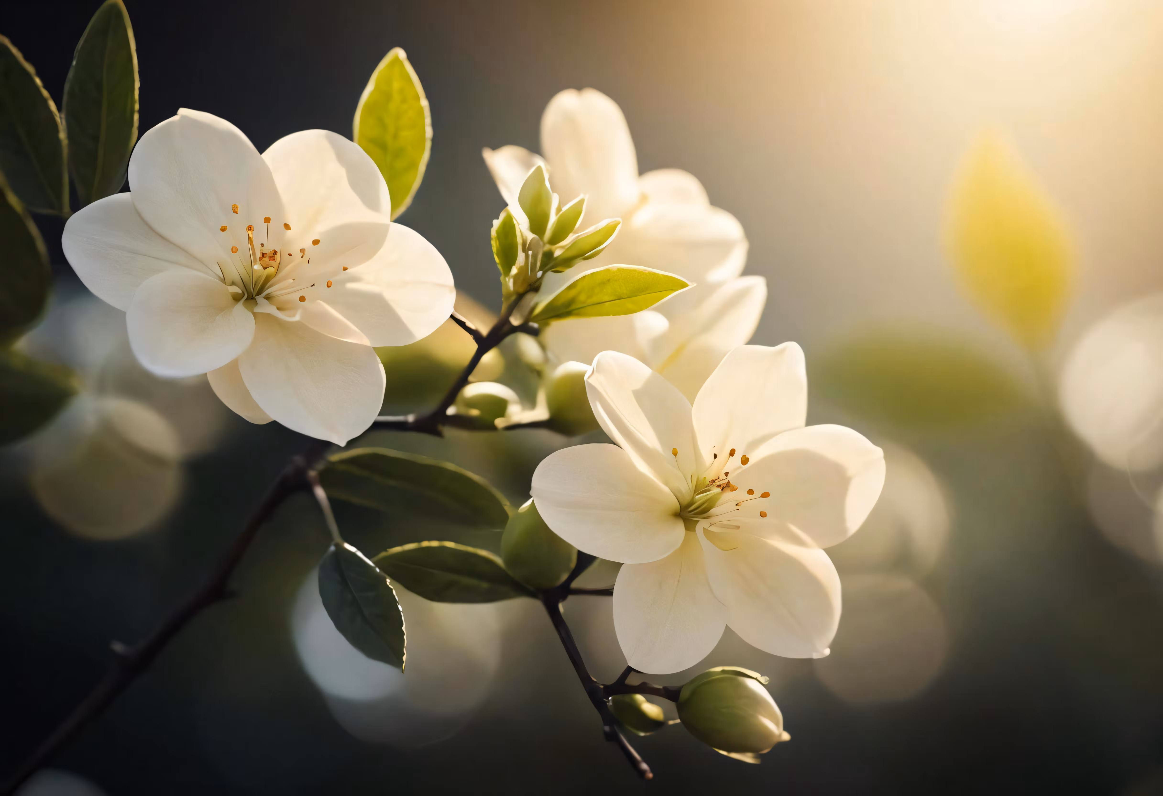 High resolution picture, free to use, two white flowers in the sun shining from behind them