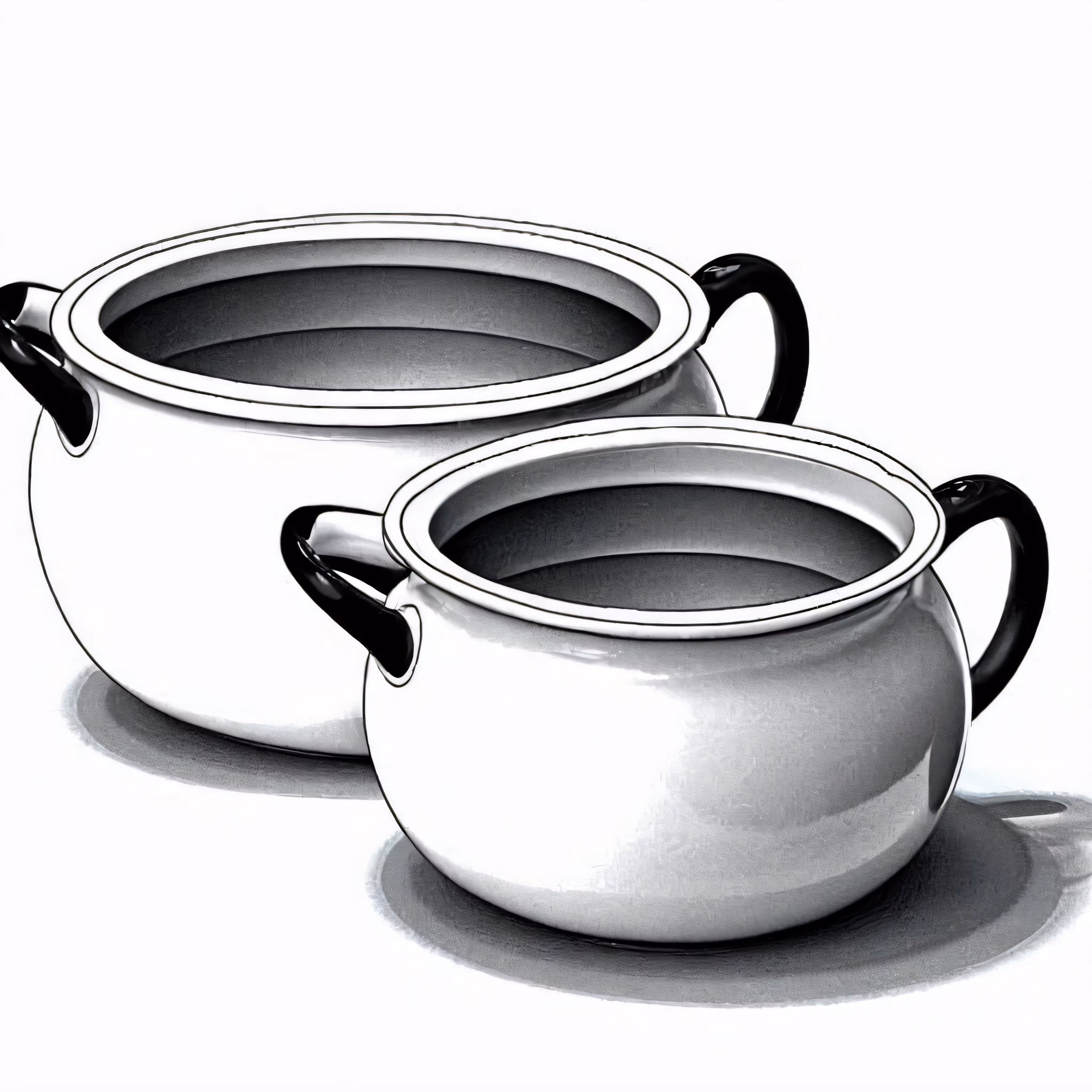 High resolution picture, free to use, two white soup pots with handles and handles
