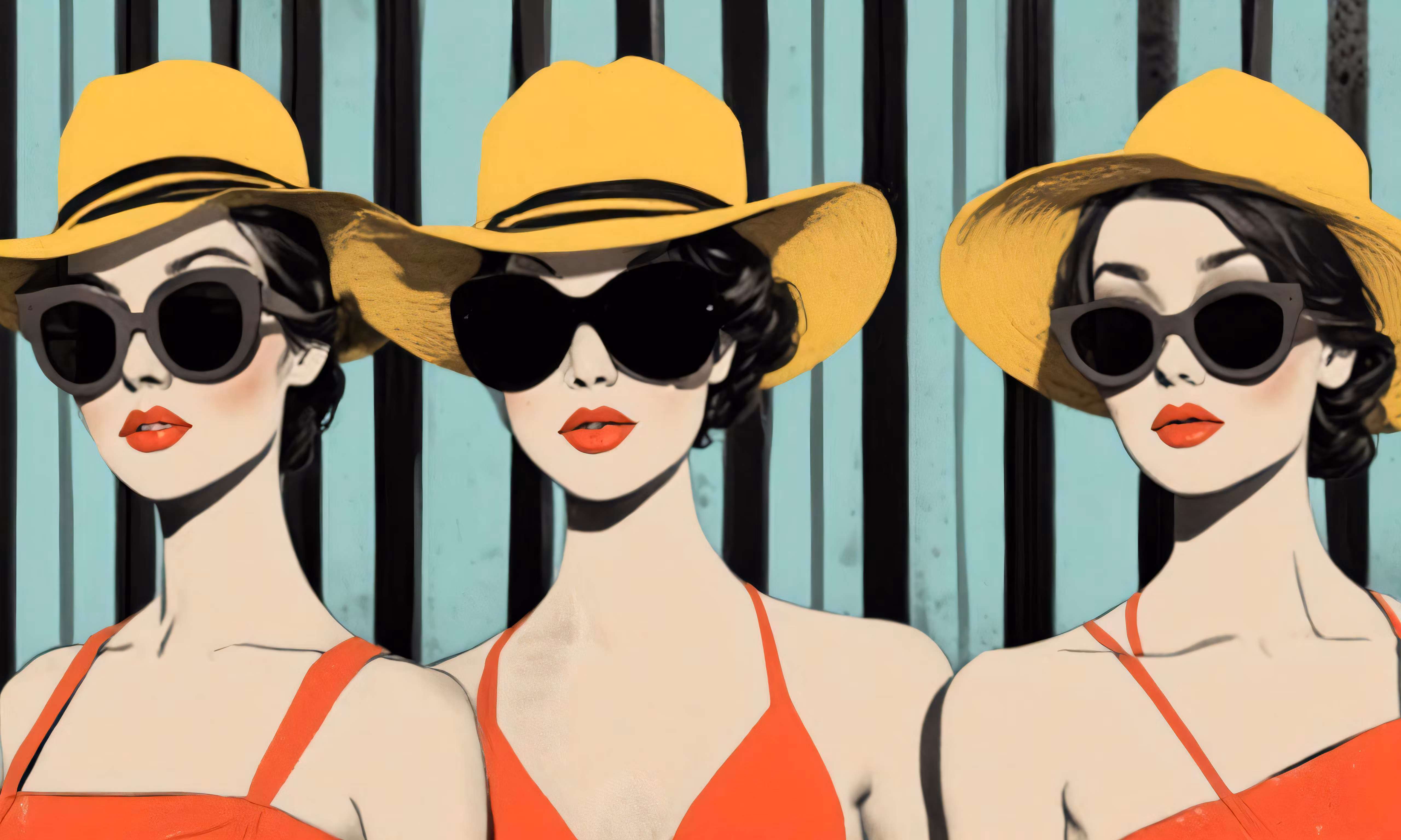 High resolution picture, free to use, two women wearing large sun glasses and matching hats