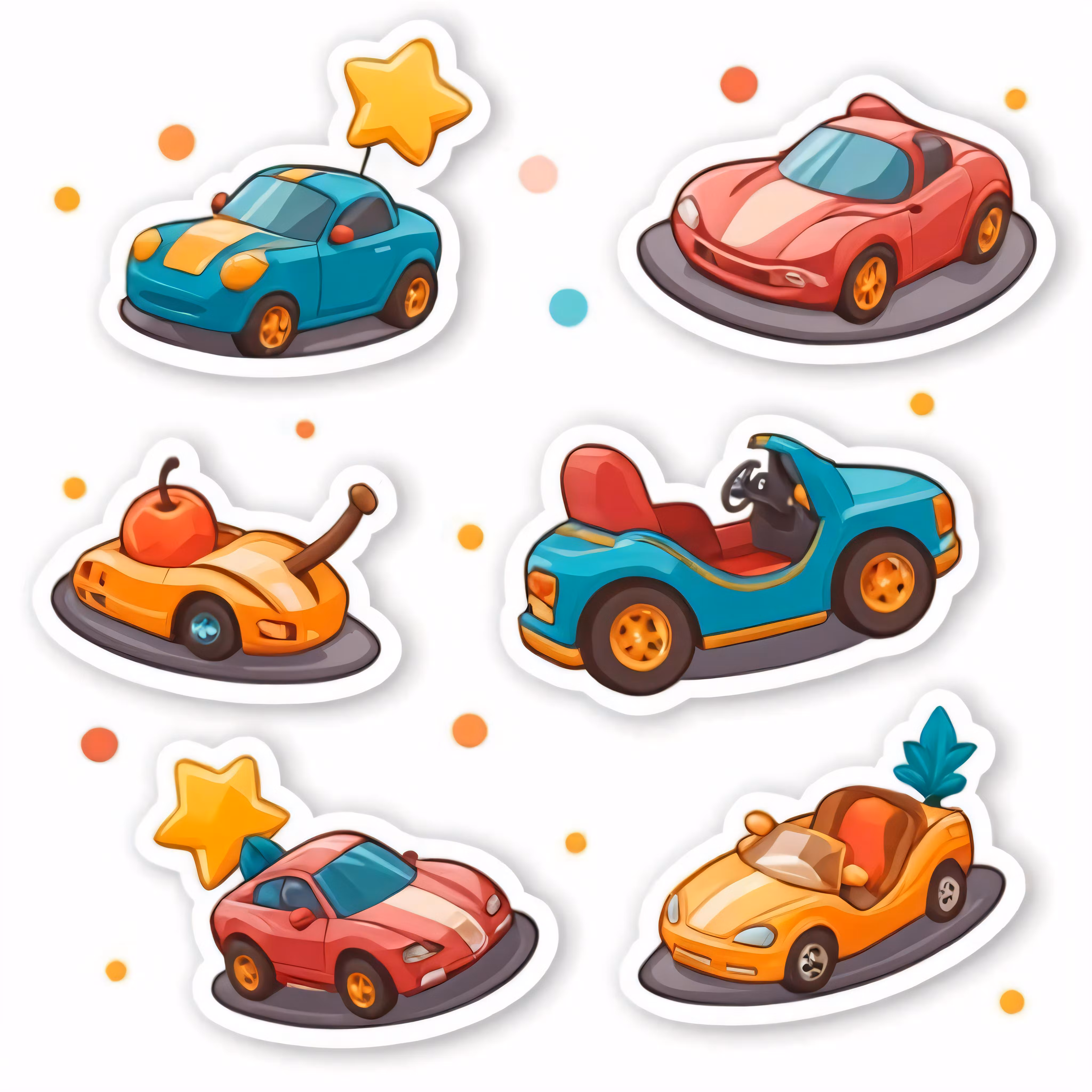 High resolution picture, free to use, various cartoon cars stickers with stars on them