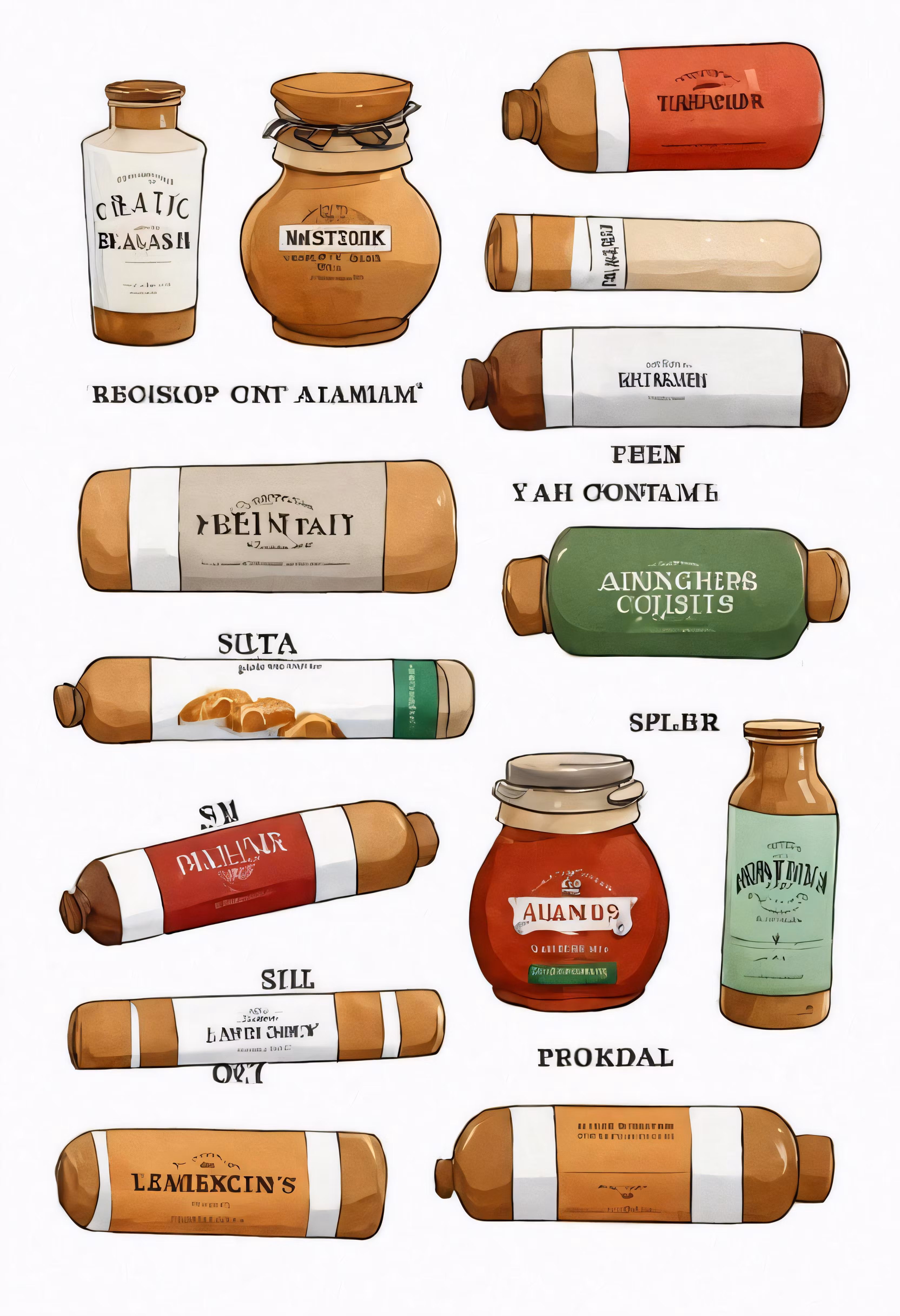 High resolution picture, free to use, various kinds of condiments are labeled in the diagram