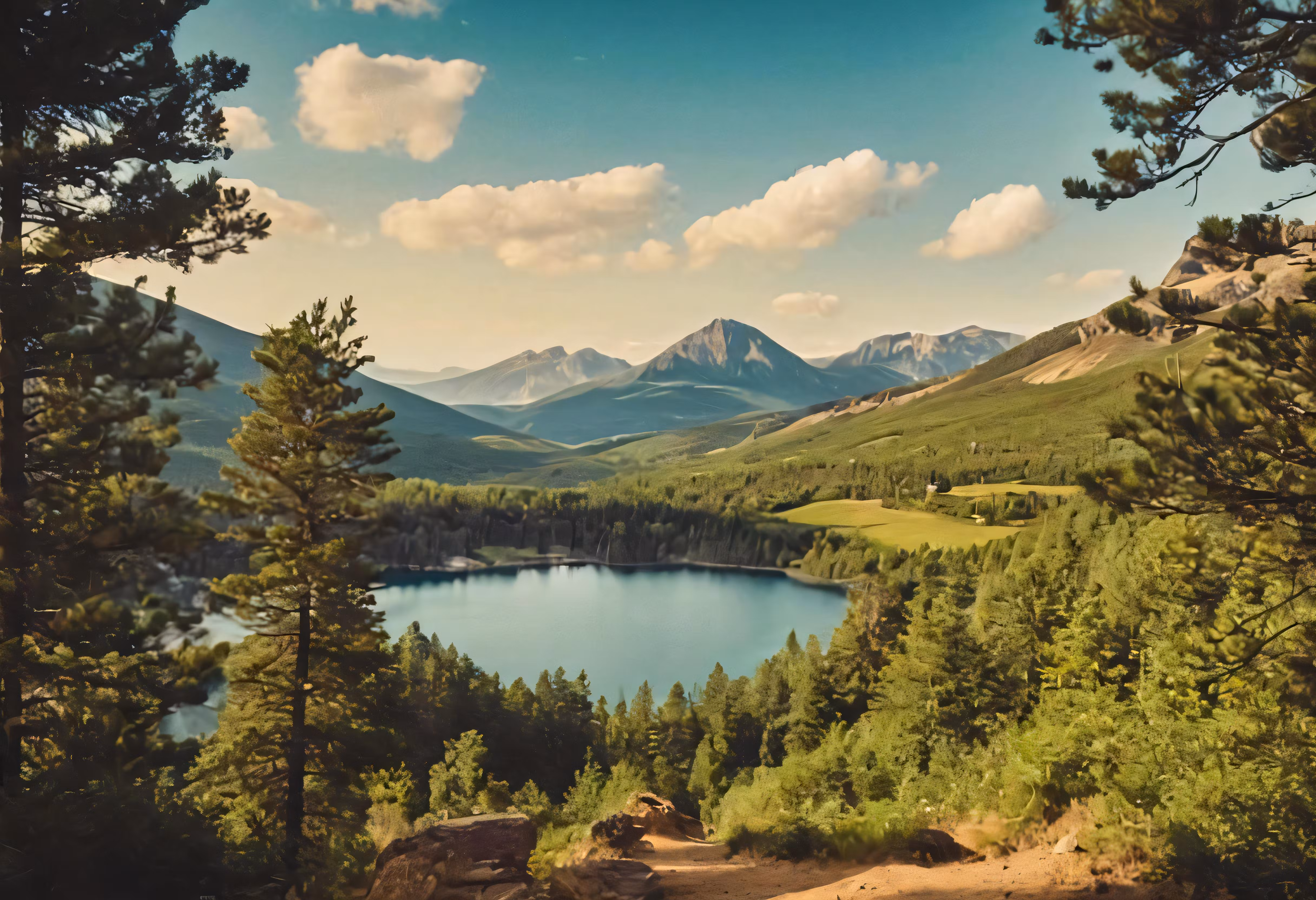 High resolution picture, free to use, view of the mountains, the lake and the sky