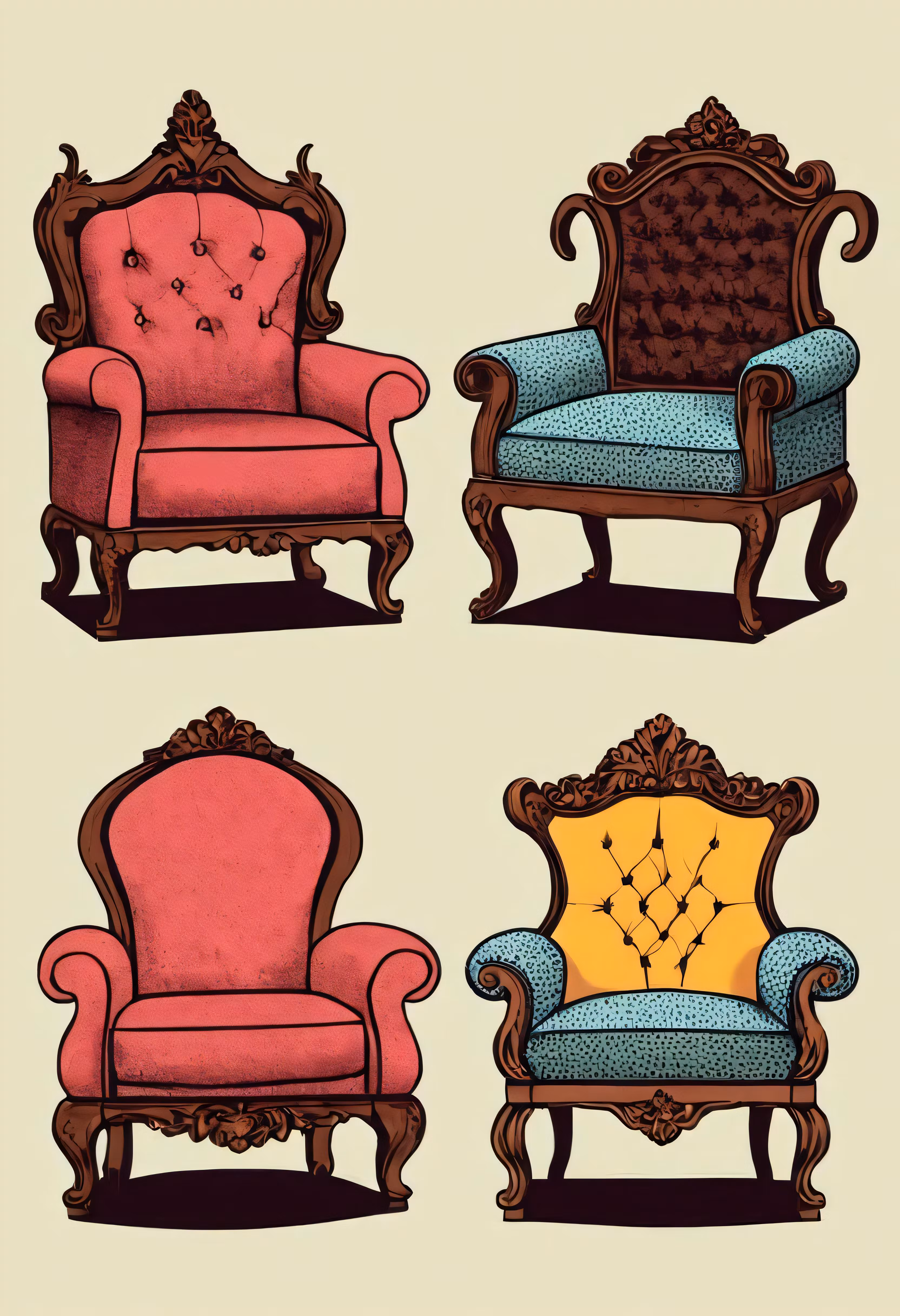High resolution picture, free to use, vintage style chairs in various colors
