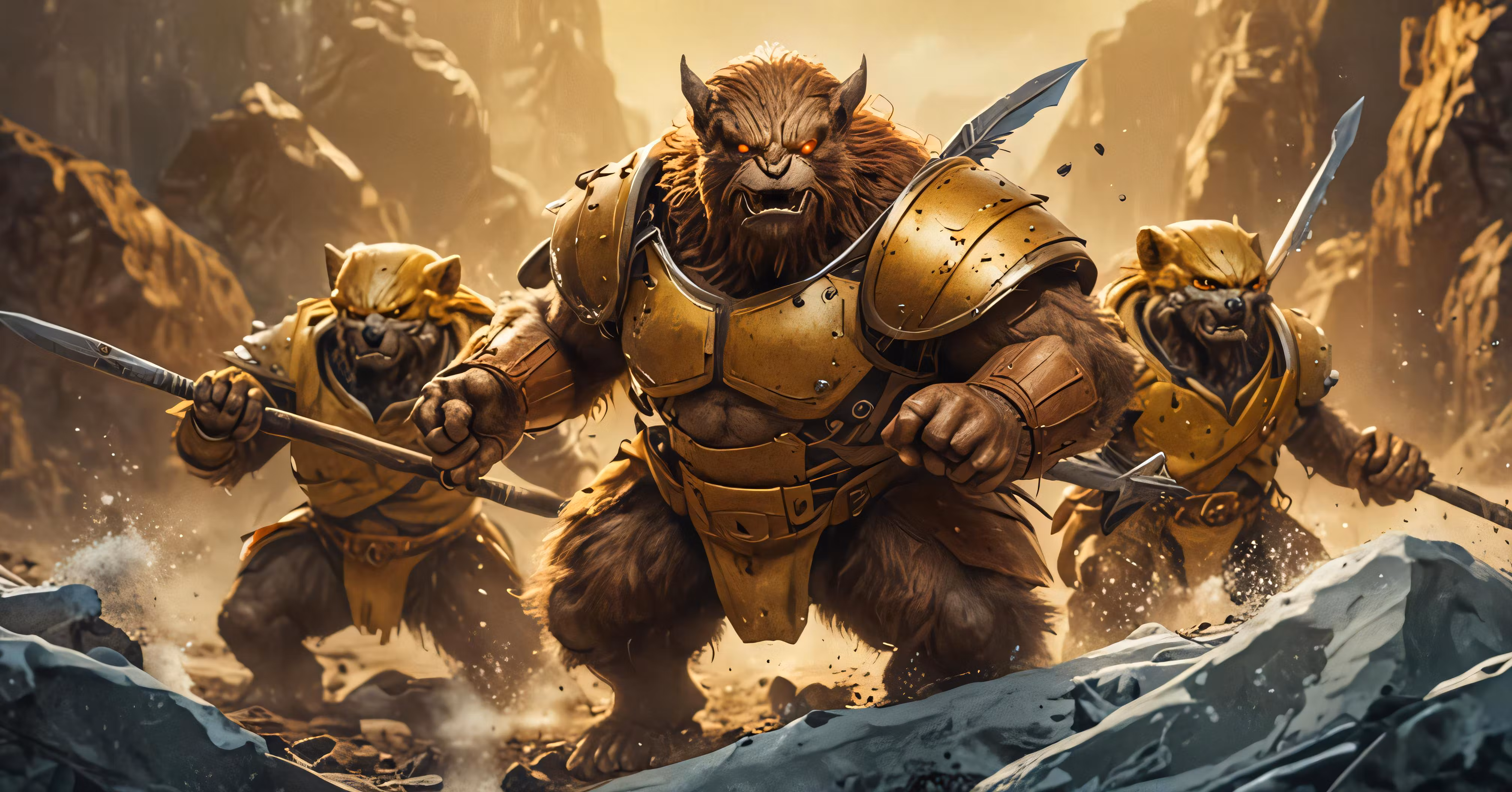 High resolution picture, free to use, warcraft battle with the warcrafts, two large gorilla soldiers