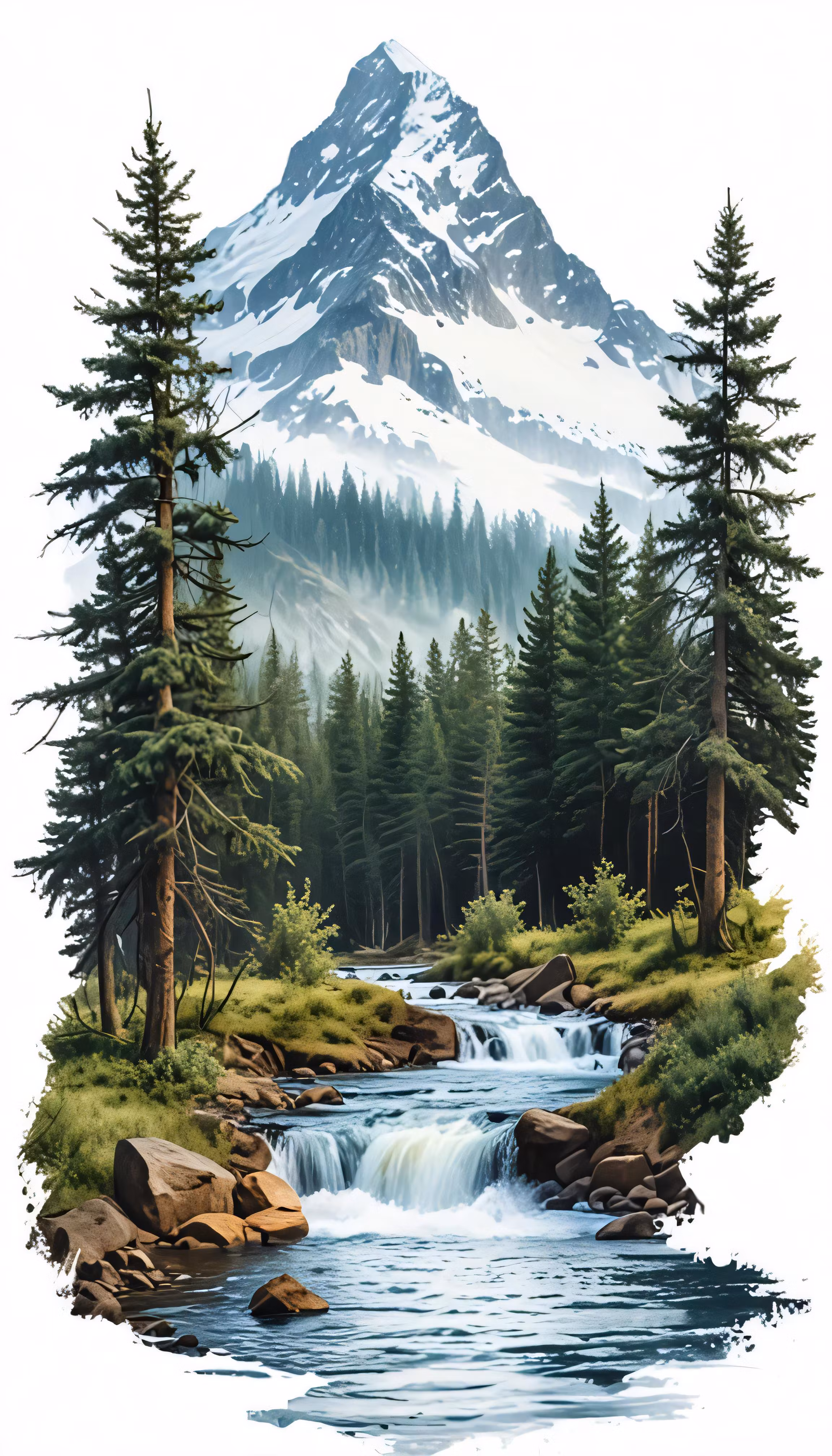 High resolution picture, free to use, water flowing over a small waterfall surrounded by trees